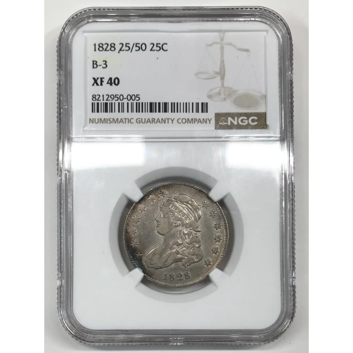 1828 25/50C B-3 Capped Bust Quarter NGC XF-40 - FS-901