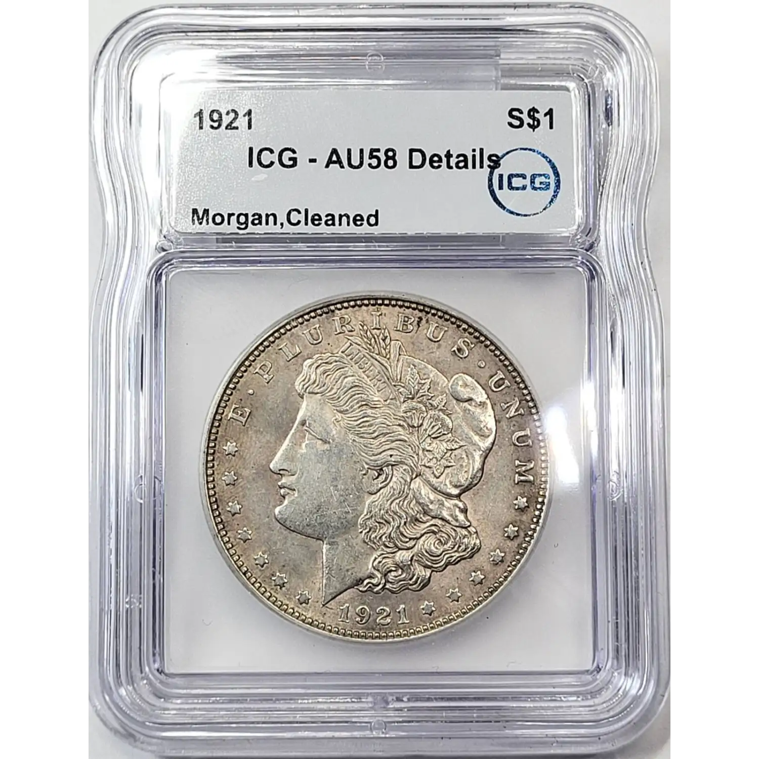 1921 Morgan Silver Dollar ICG AU-58 Cleaned Details