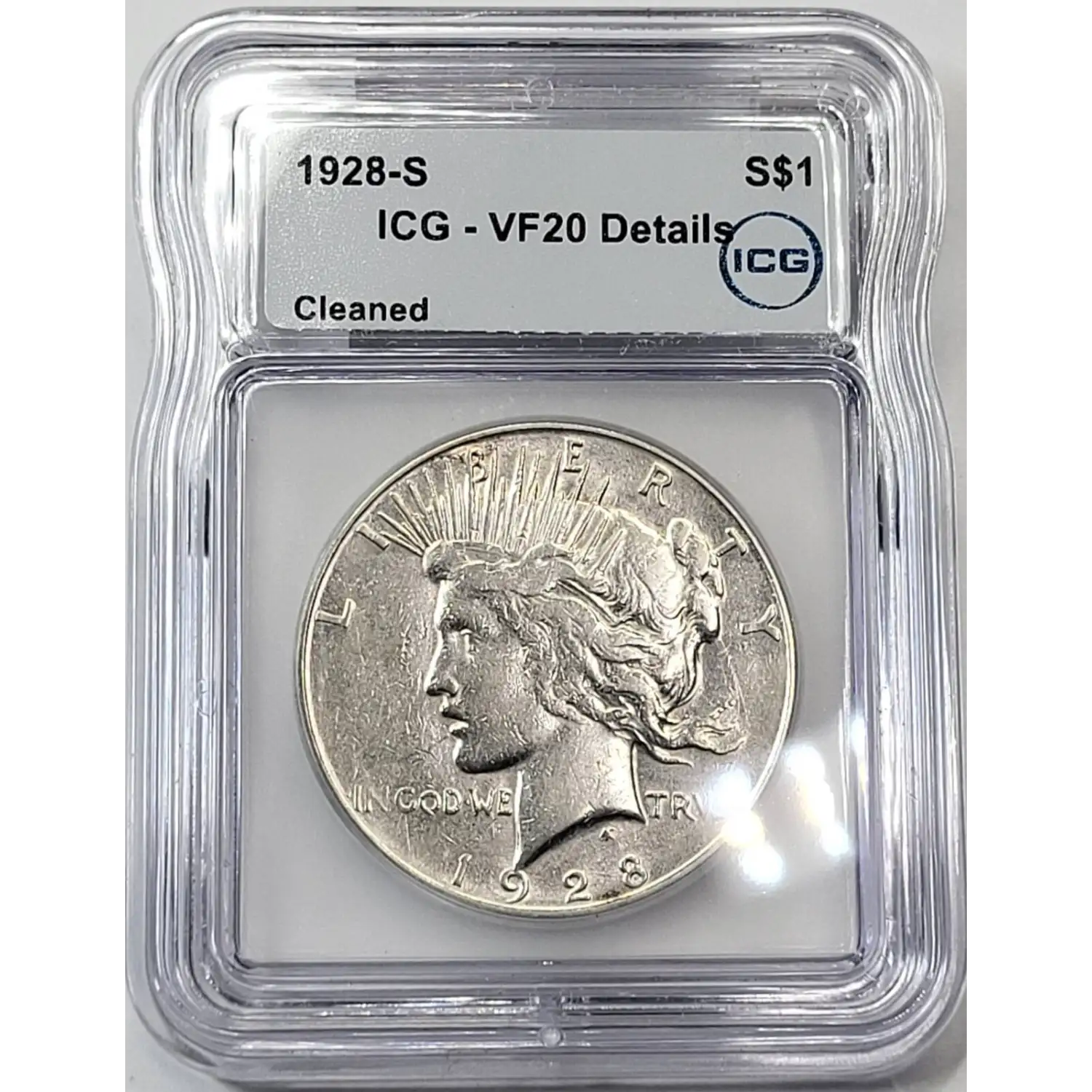 1928-S Peace Silver Dollar ICG VF-20 Cleaned Details