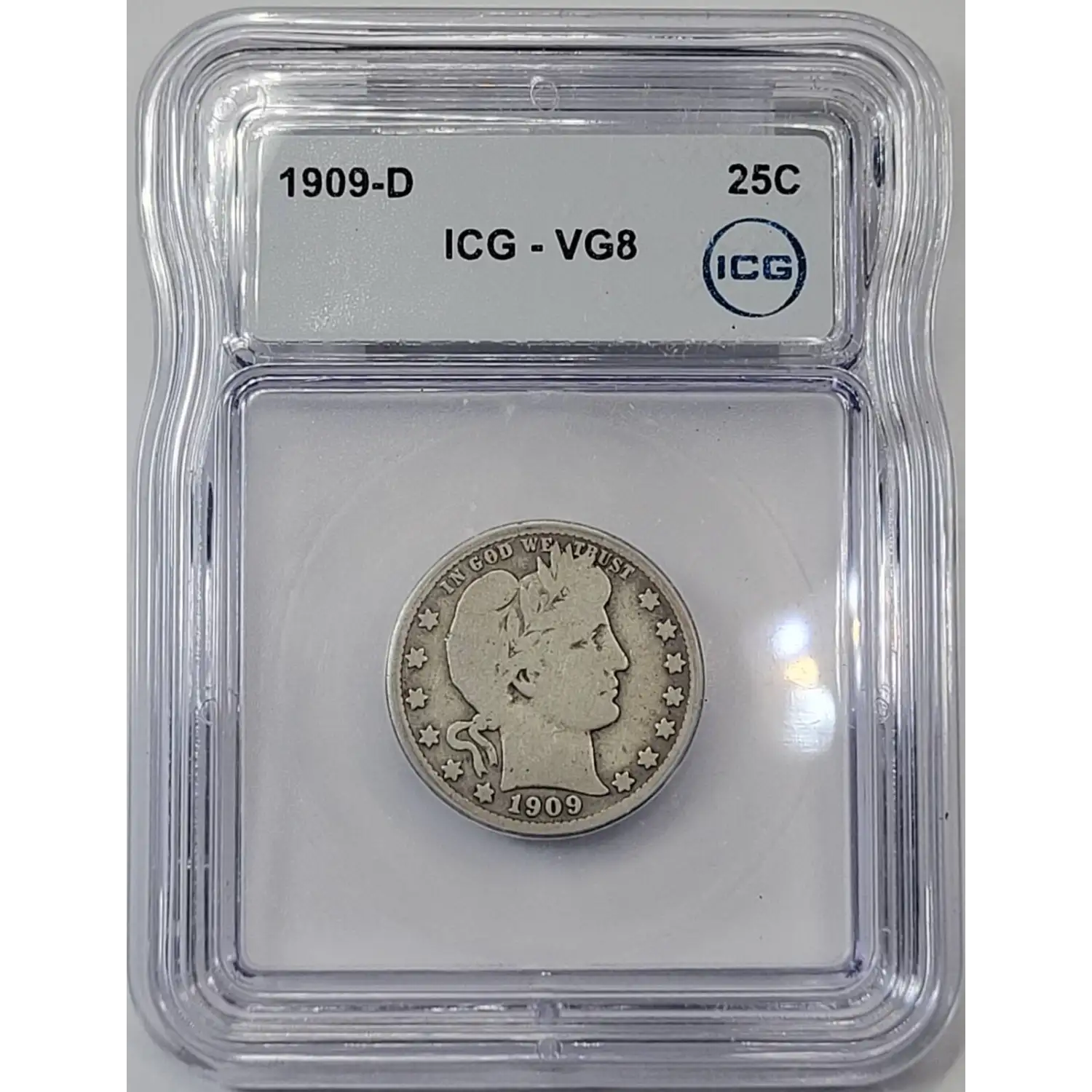 1909-D Barber Liberty Head Quarter ICG VG-8