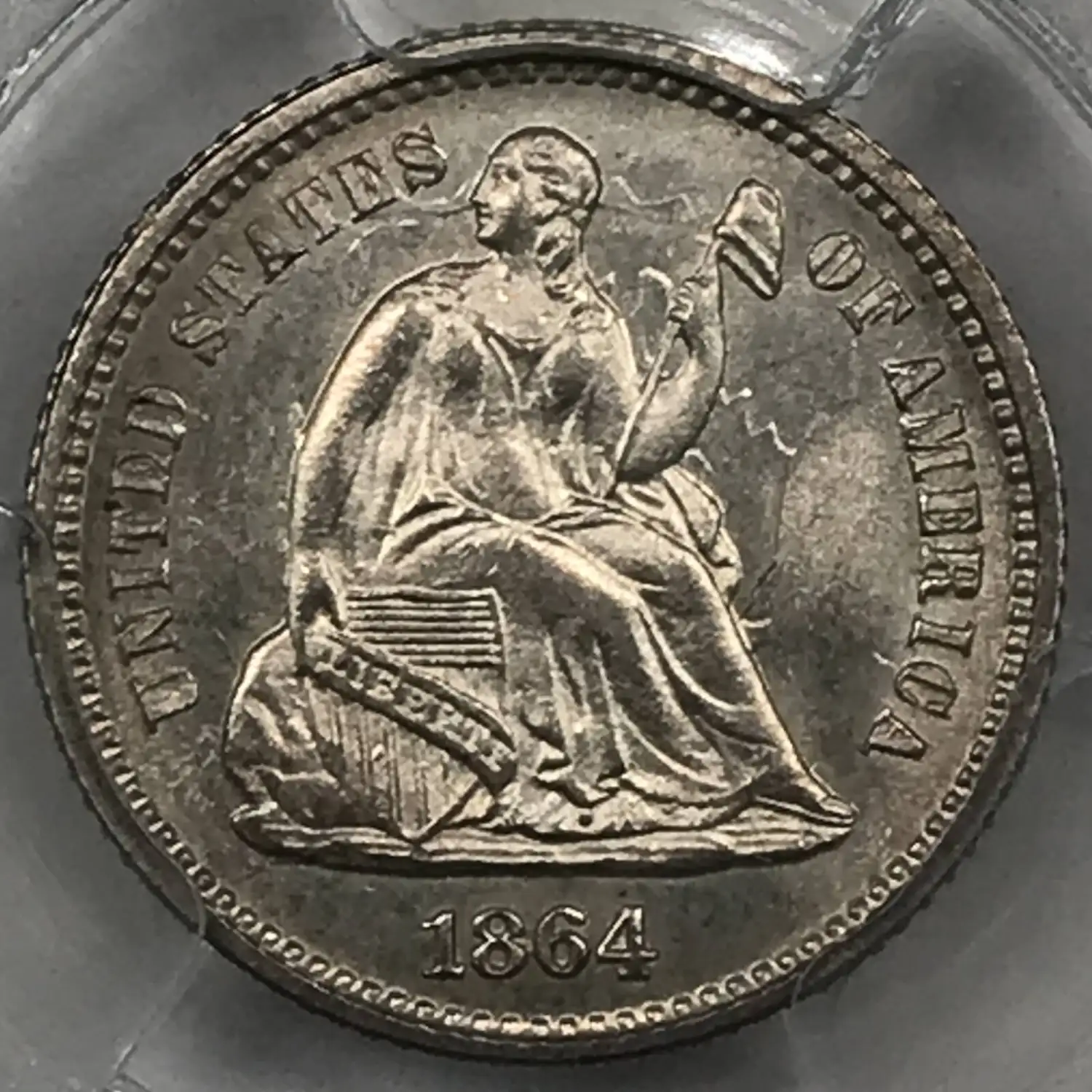 1864 P Seated Liberty Half Dime PCGS MS-64 - HARD TO FIND - Strong Die Clash