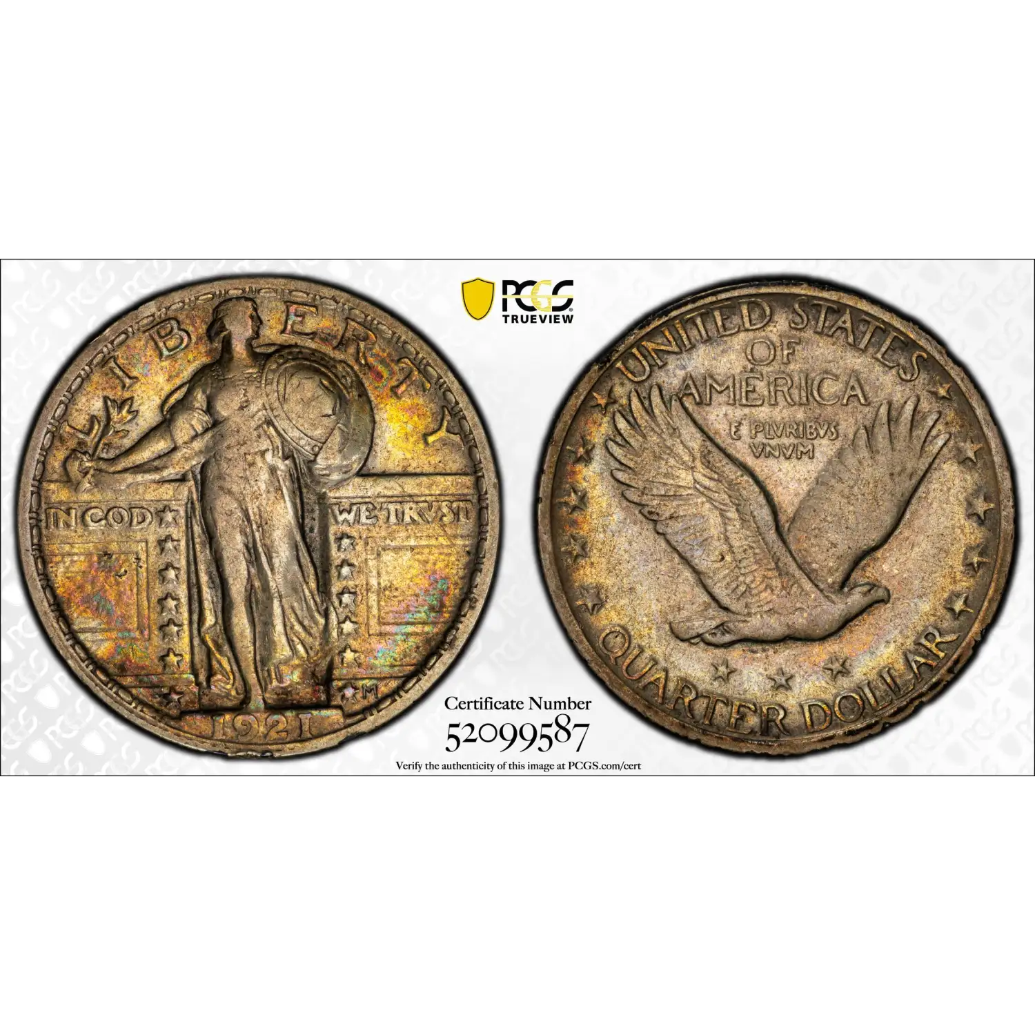 1921 P Standing Liberty Quarter PCGS VF-30 *Rainbow Toning*