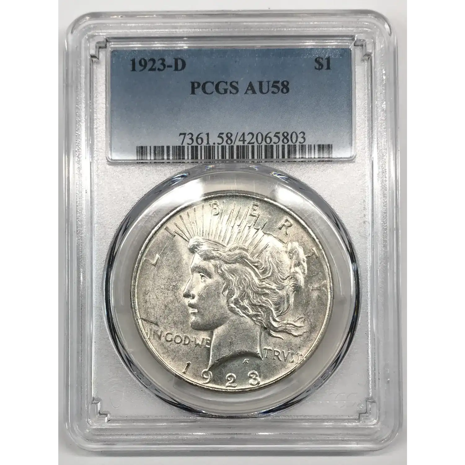 1923 D Peace Silver Dollar PCGS AU-58