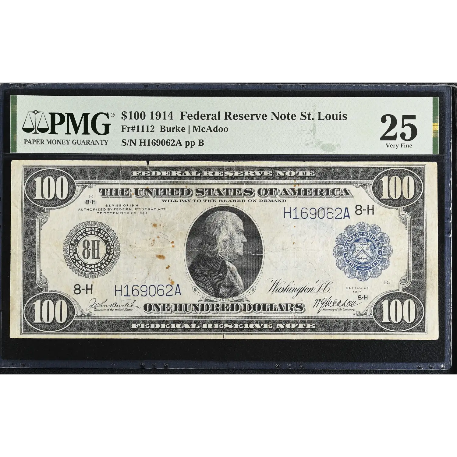 1914 $100 Federal Reserve St. Louis Note FR#1112 - 25 Very Fine
