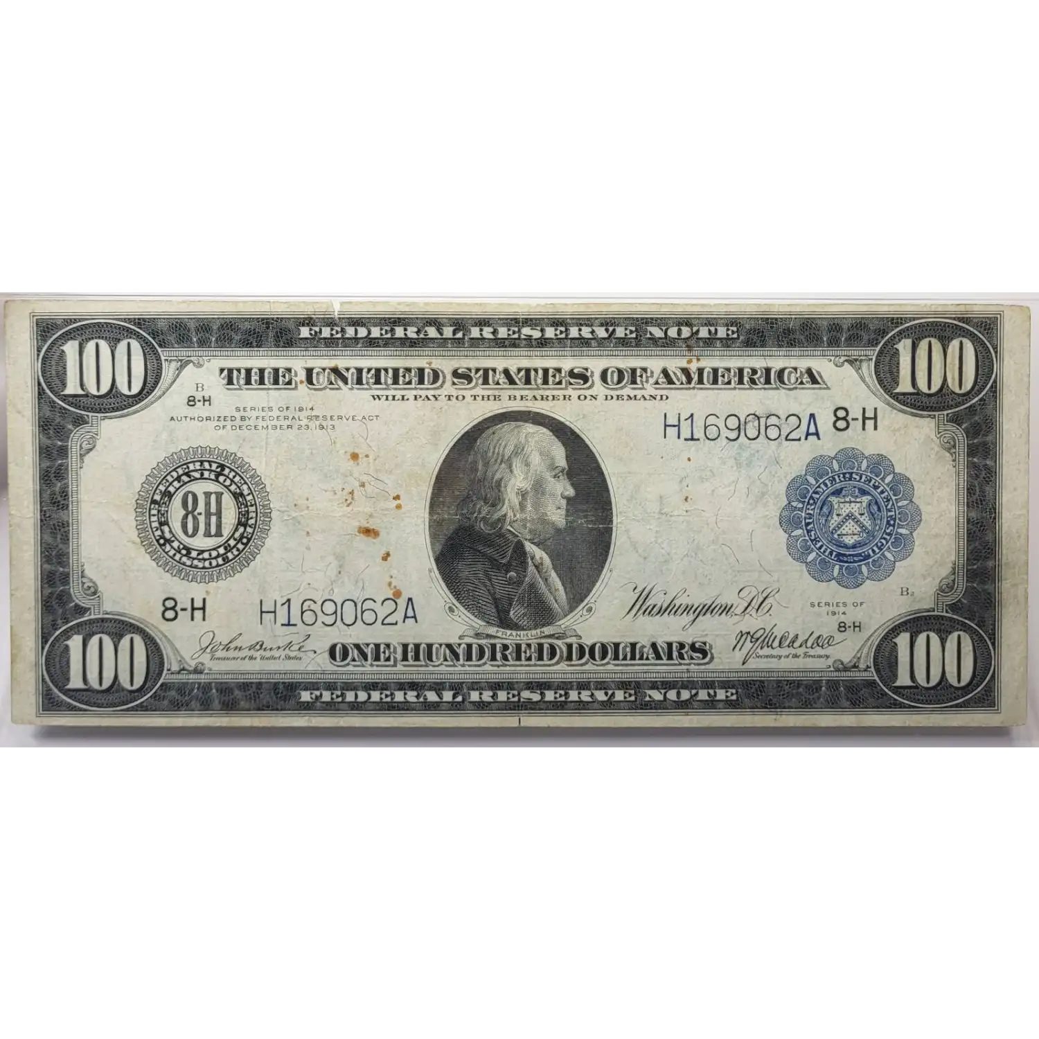 $100 1914 Blue Seal Federal Reserve Notes 1112