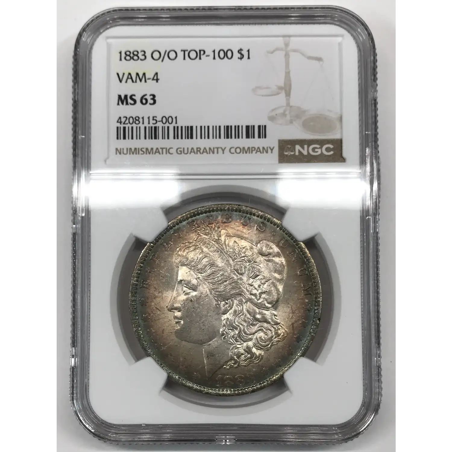 1883-O/O Morgan Silver Dollar NGC MS-63 - TOP 100 VAM-4 Strong O/O - Blue Rim Toning