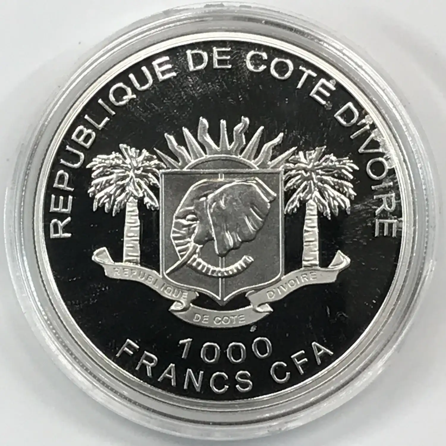 2011 IVORY COAST Silver 1000 FRANCS Smilodon Sabre Tooth Tiger Colorized