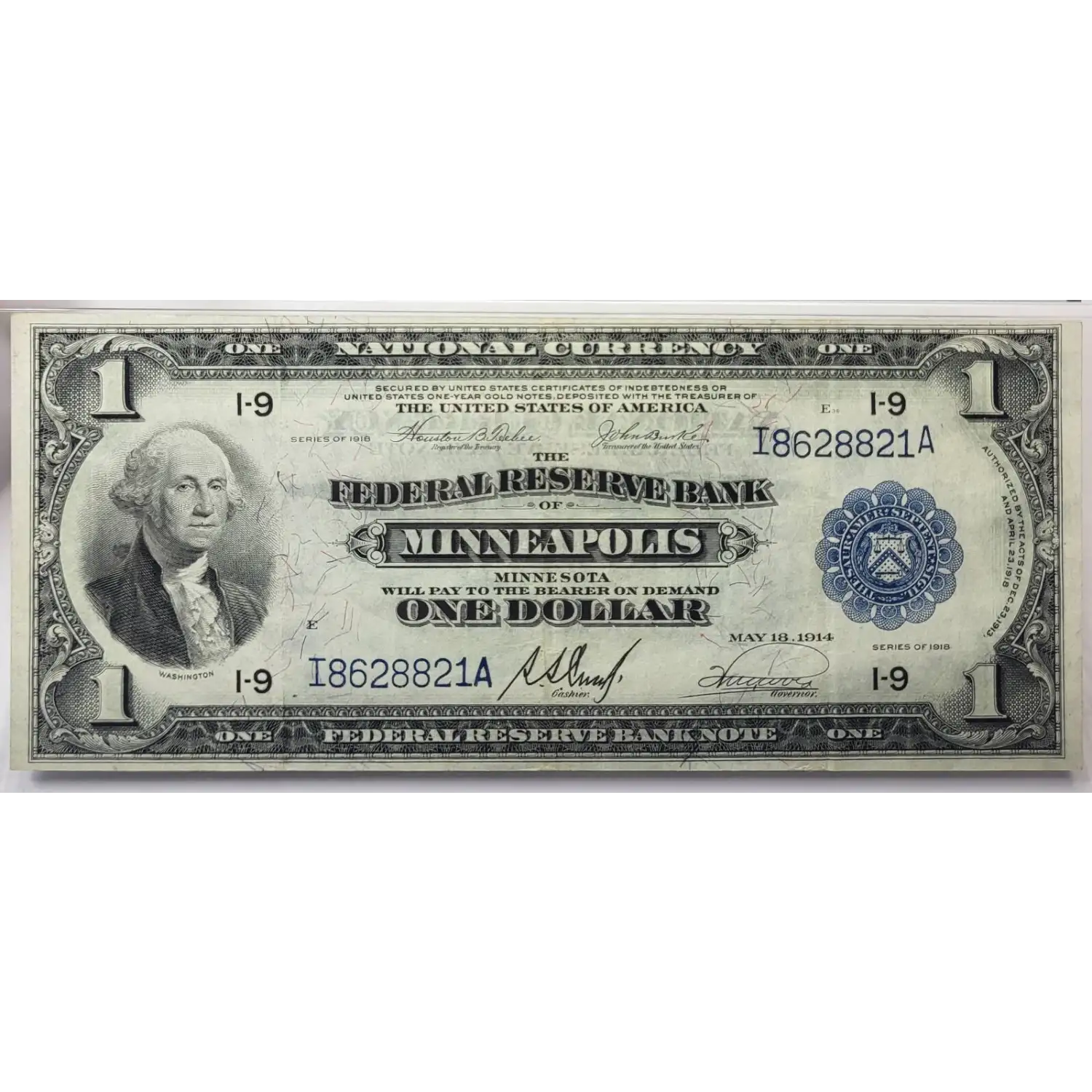 1918 $1 Federal Reserve Bank Note Minneapolis Fr#734 - 40 Extremely Fine EPQ