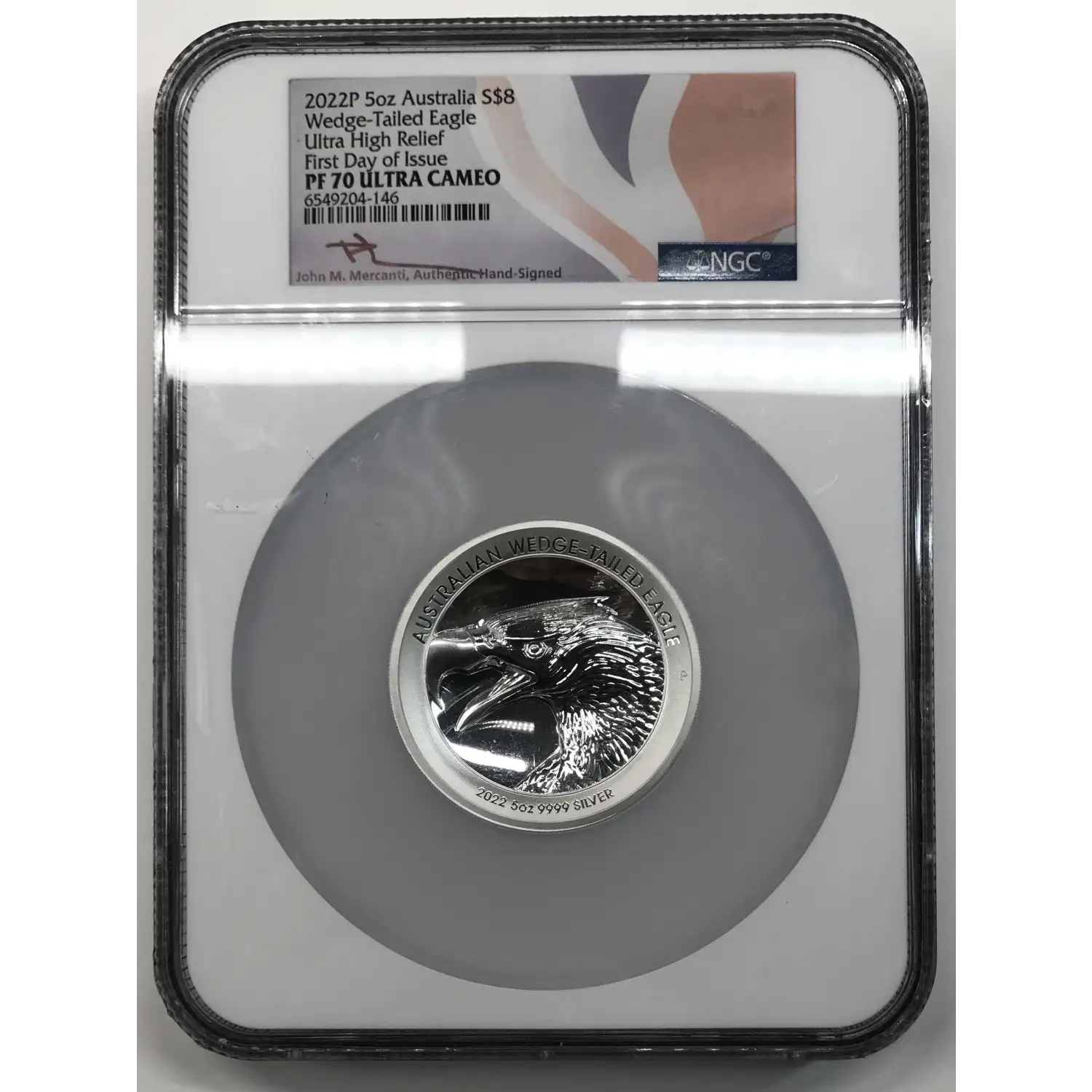 2022-P Proof Wedge-Tailed Eagle Ultra High Relief Australia 5 oz Silver $8 Coin NGC PF-70 ULTRA CAMEO First Day of Issue (FDOI/FDI) Mercanti Signature Label
