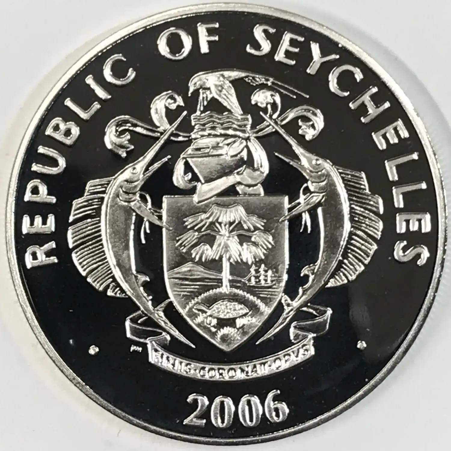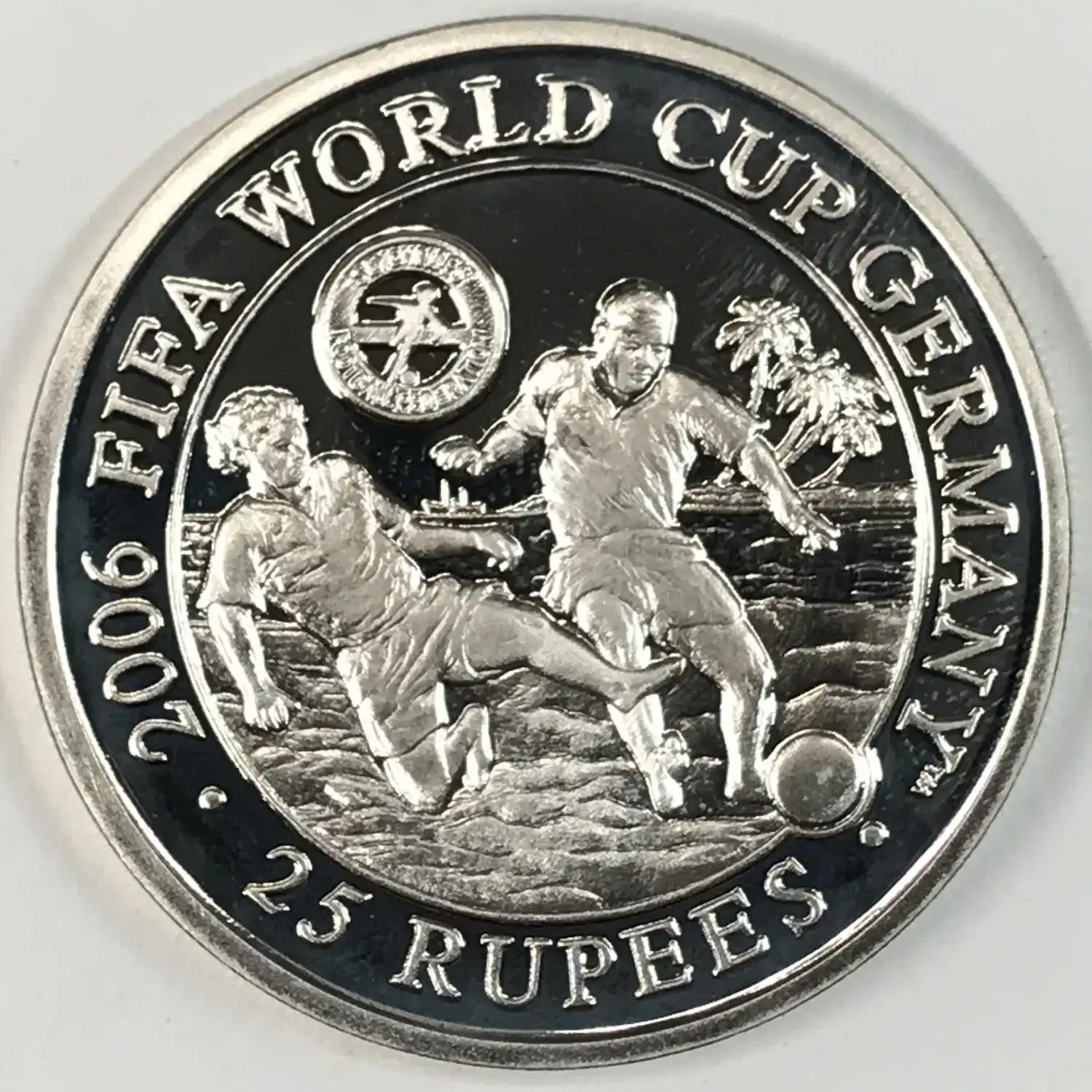 2006 Proof Seychelles Silver 25 Rupees - Fifa 2006 World Cup Football/Soccer - Germany - KM#129 - 28.28 g, .925 fine, 0.841 troy oz Adjusted Silver Weight (ASW)