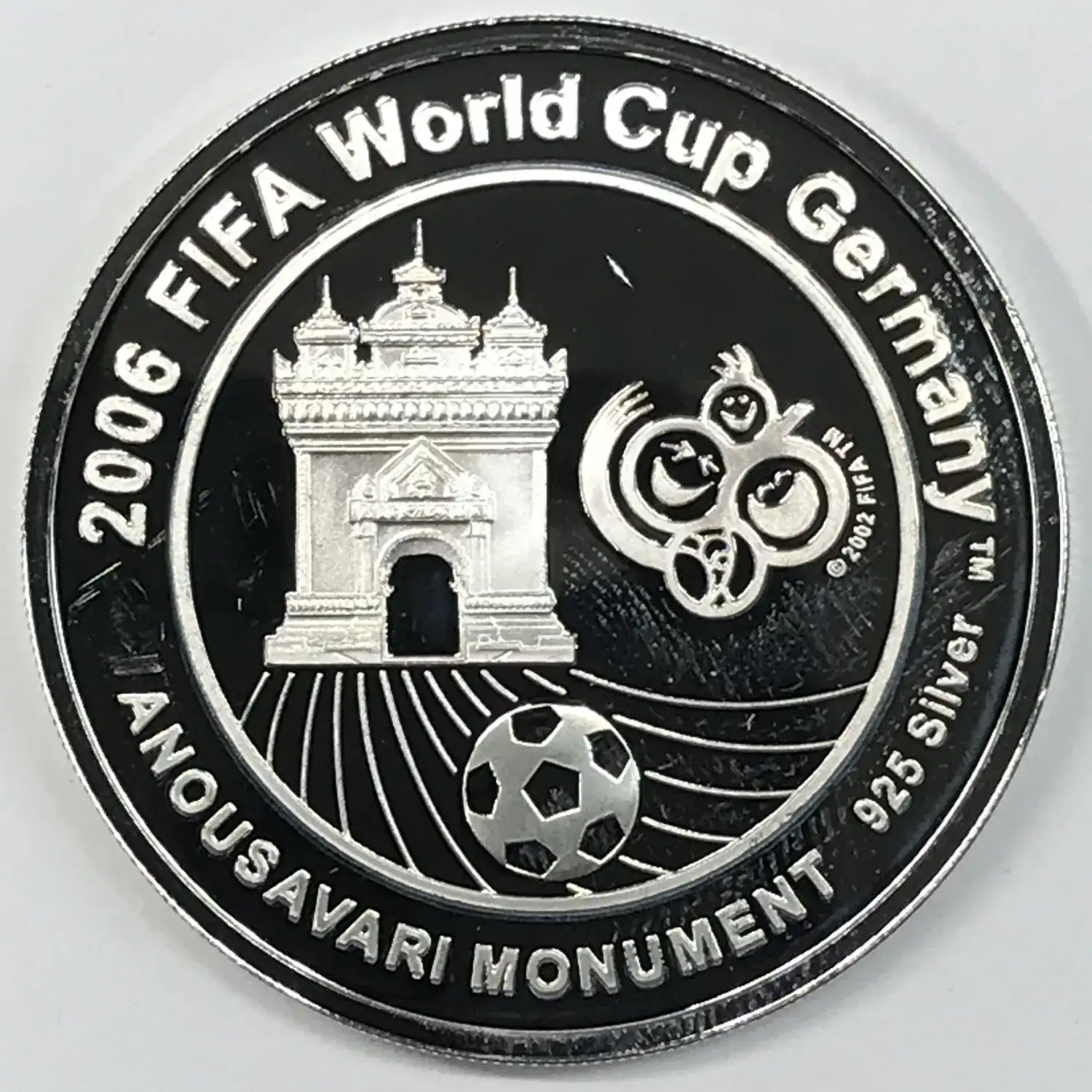 2006 Proof Lao People's Democratic Republic (Laos) Silver 15,000 Kip - Fifa 2006 World Cup Football/Soccer - Germany - 31.1g, .925 fine, 0.925 troy oz Adjusted Silver Weight (ASW)