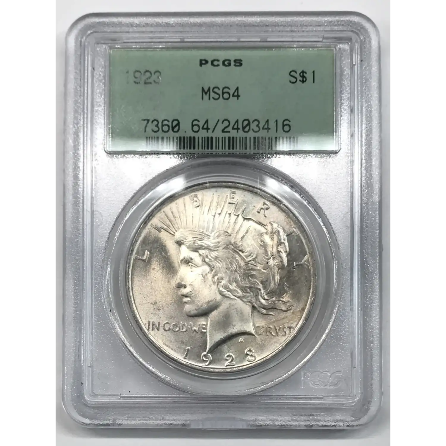 1923 P Peace Silver Dollar PCGS MS-64 - Gen 3.0 Old Green Holder (OGH)