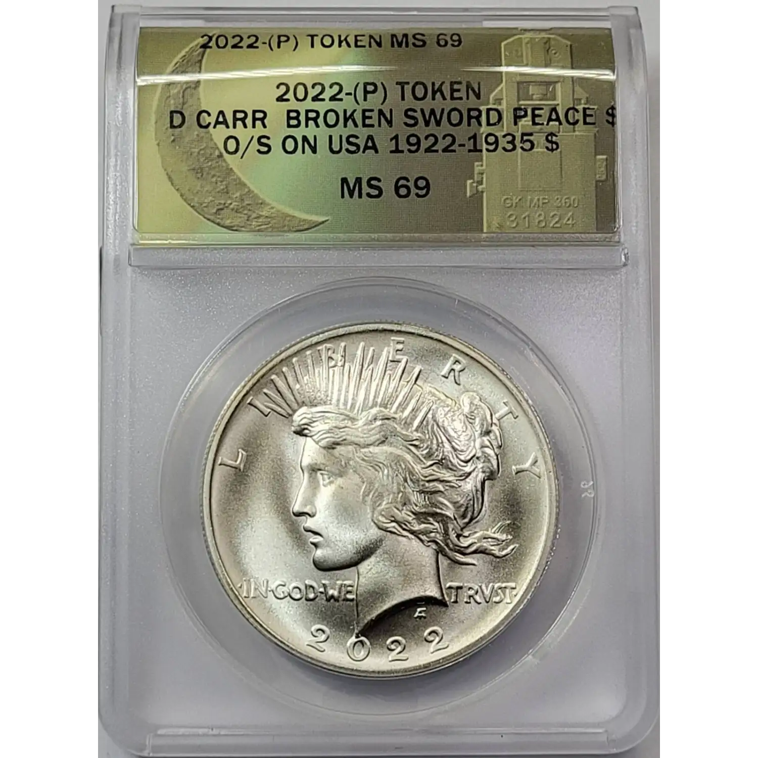 2022 Daniel Carr Medal ANACS MS-69 Broken Sword Peace Dollar O/S on USA generic