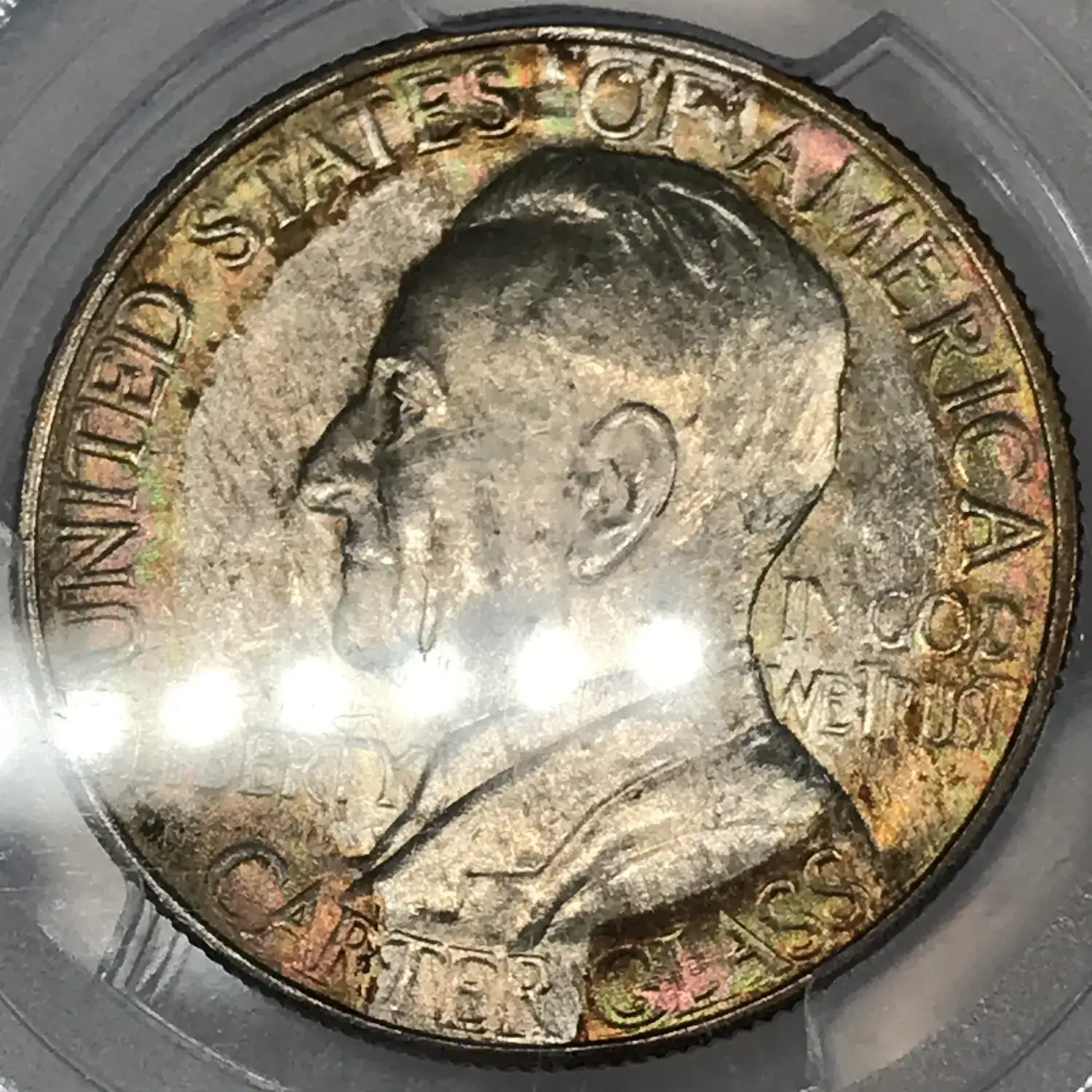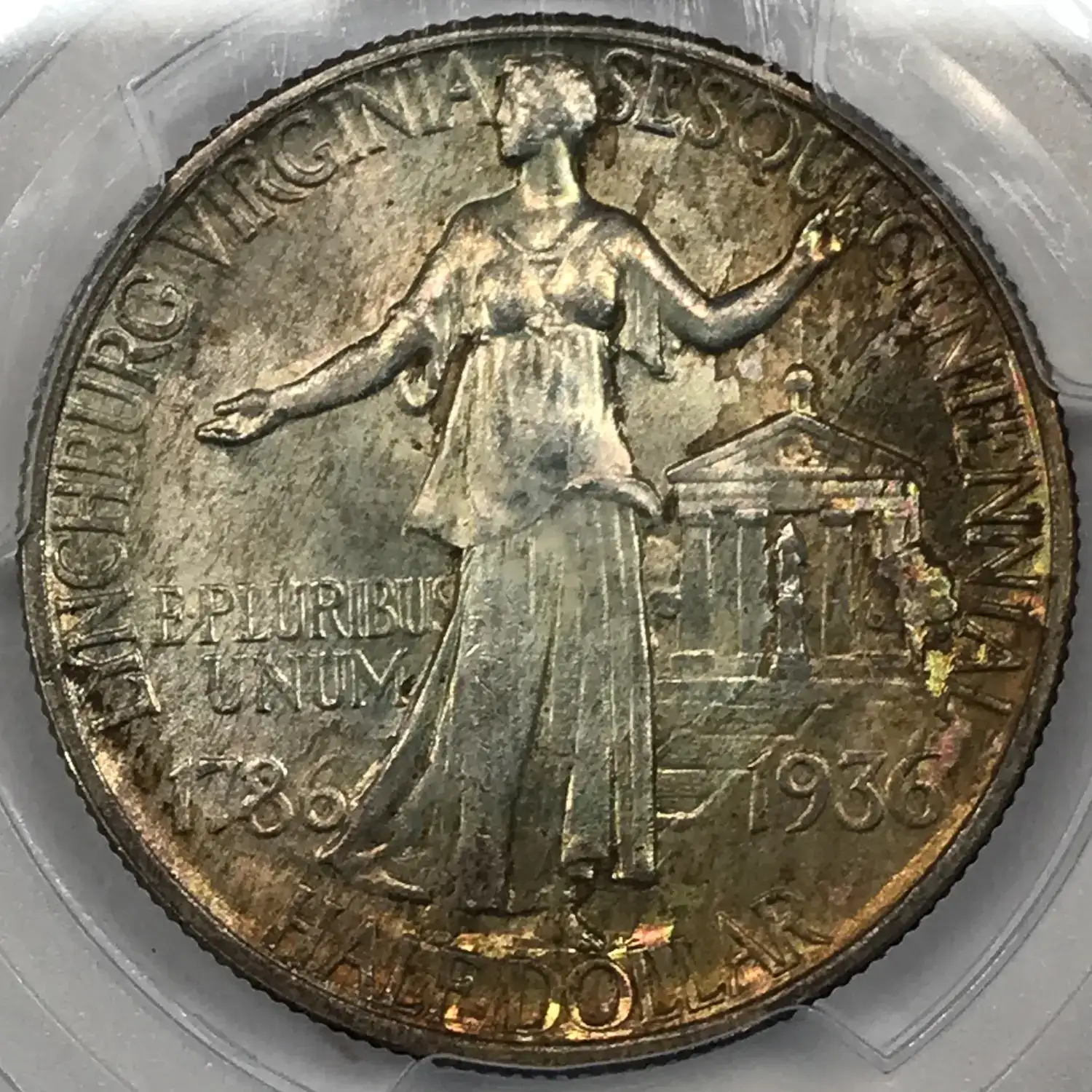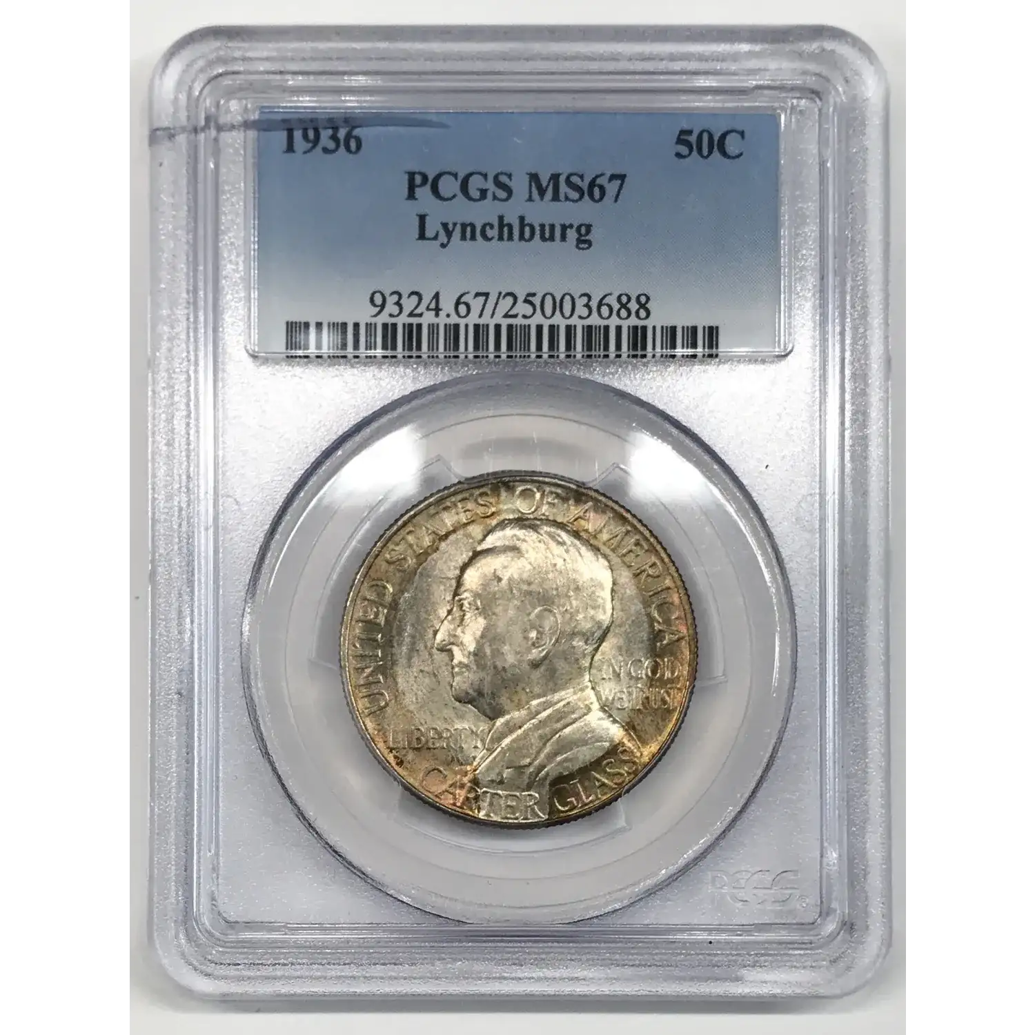 1936 P Lynchburg Virginia Sesquicentennial Commemorative Half Dollar PCGS MS-67 - Tab Toning - note that slab has crack (top left)