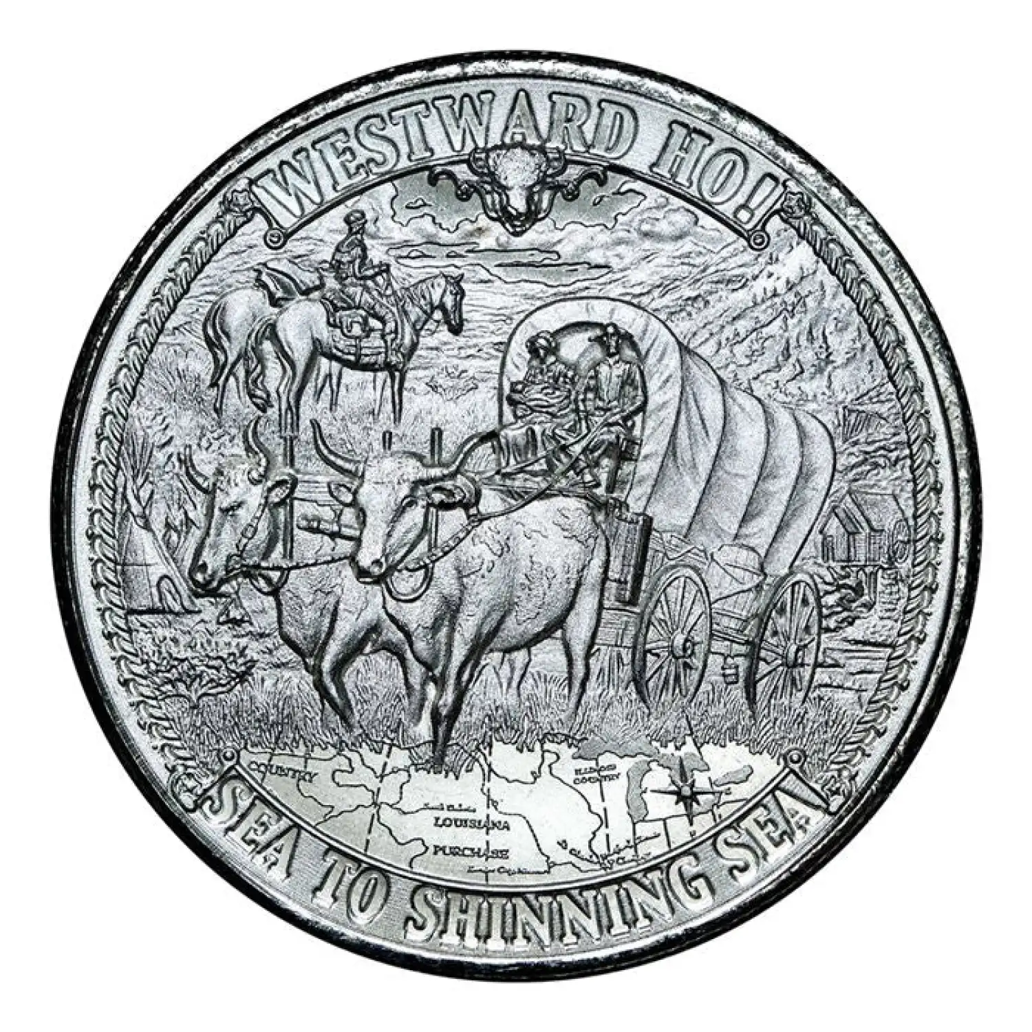 The Westward Ho design reflects the boldness of the American spirit during the 19th century, inviting you to reminisce about the journey of settlers as they ventured west in search of new opportunities and uncharted territories. The intricate details and high-quality finish exemplify the exceptional craftsmanship that goes into each round. This piece not only holds intrinsic value due to its silver content but also serves as a tangible symbol of American history.