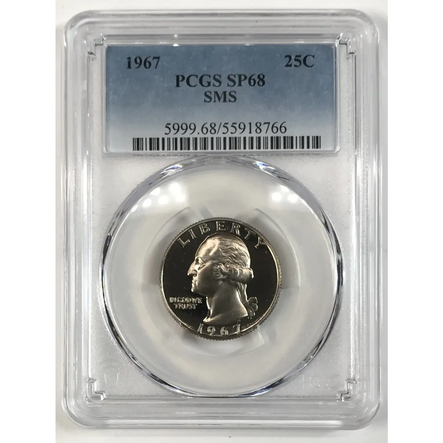 1967 SMS Washington Quarter PCGS MS/SP-68 - nice frost, contrast - nice coin - some cameo, but PCGS wasn't brave enough to give this coin the "CAM" designation - from US Mint Special Mint Set