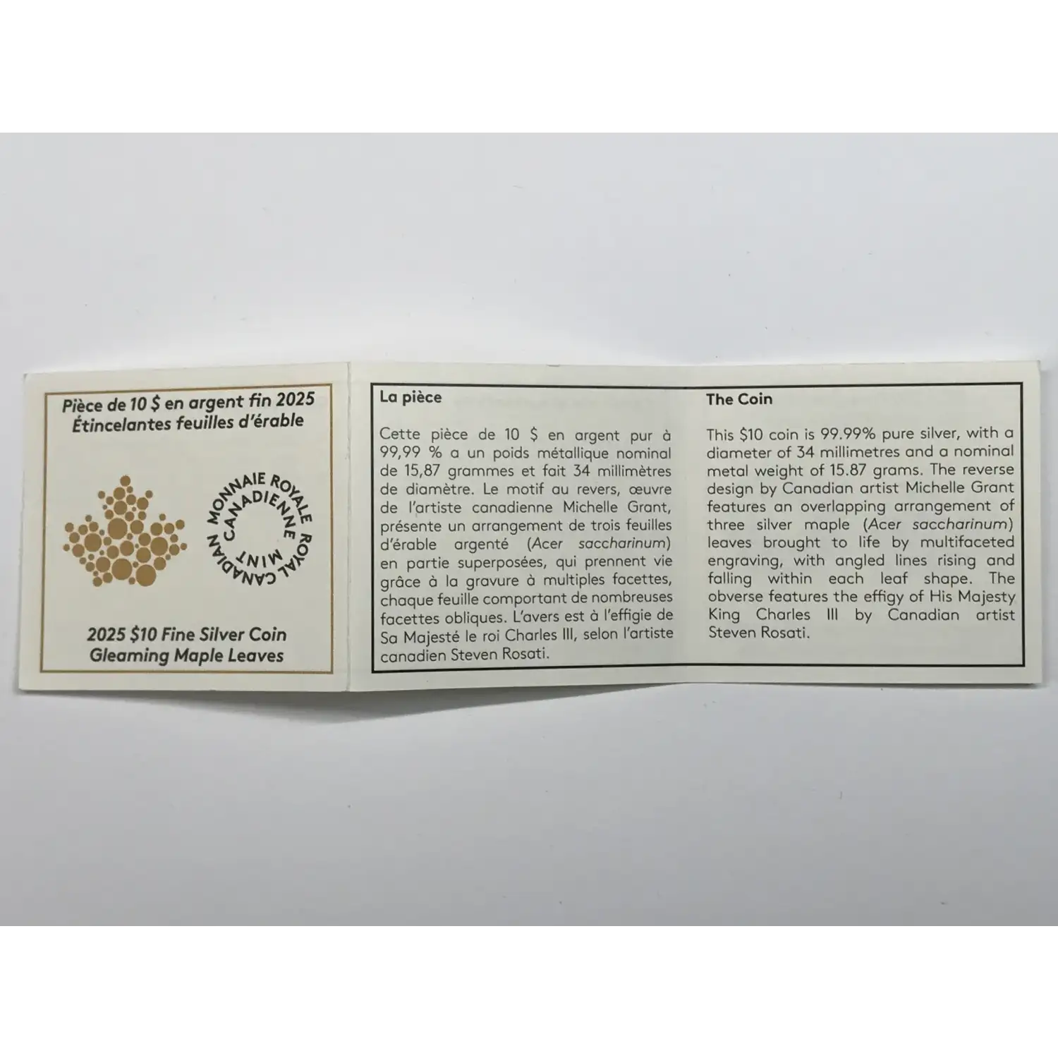 2025 CANADA Silver 10 DOLLARS Gleaming Maple Leaves