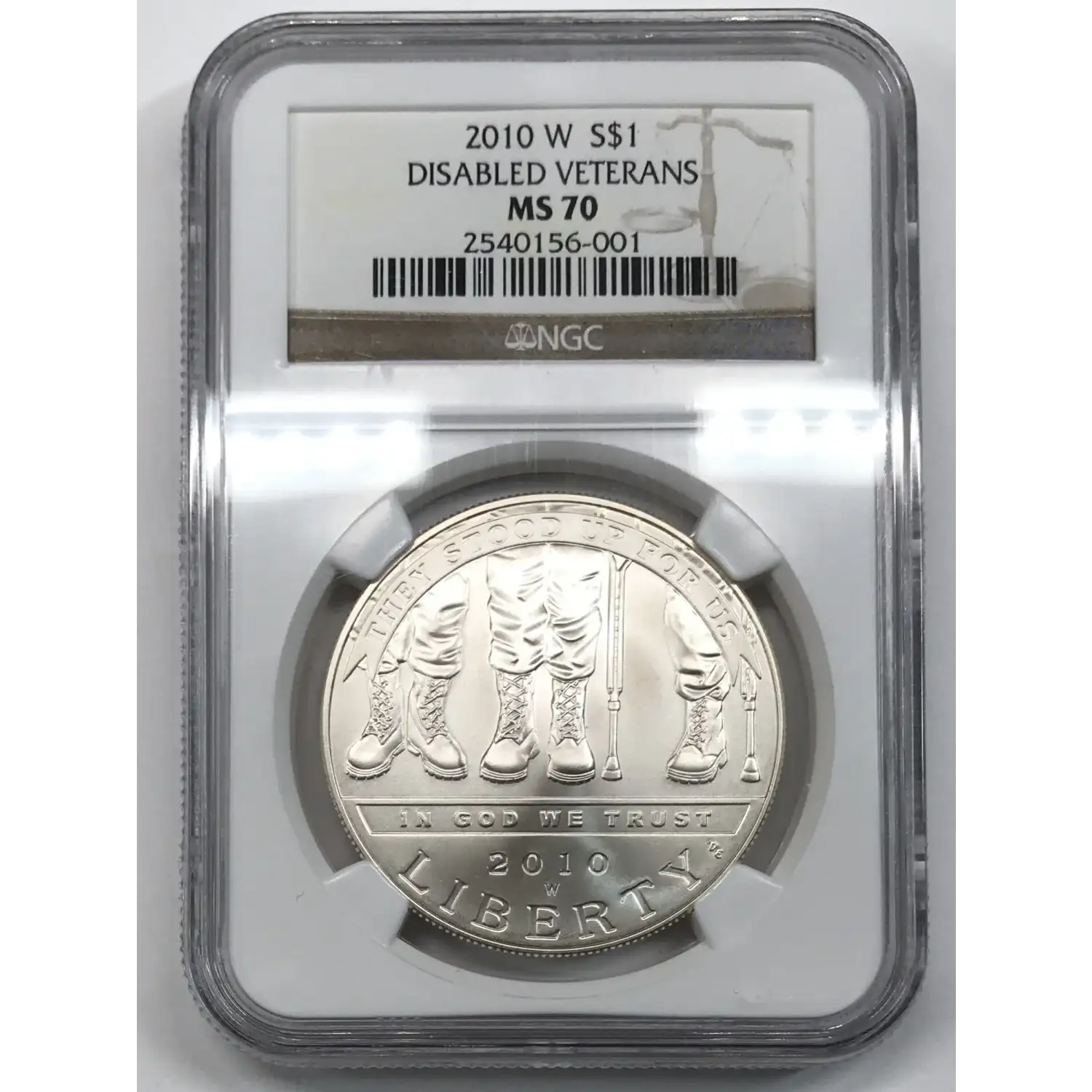 2010 W American Veterans Disabled for Life Commemorative Silver Dollar NGC MS-70