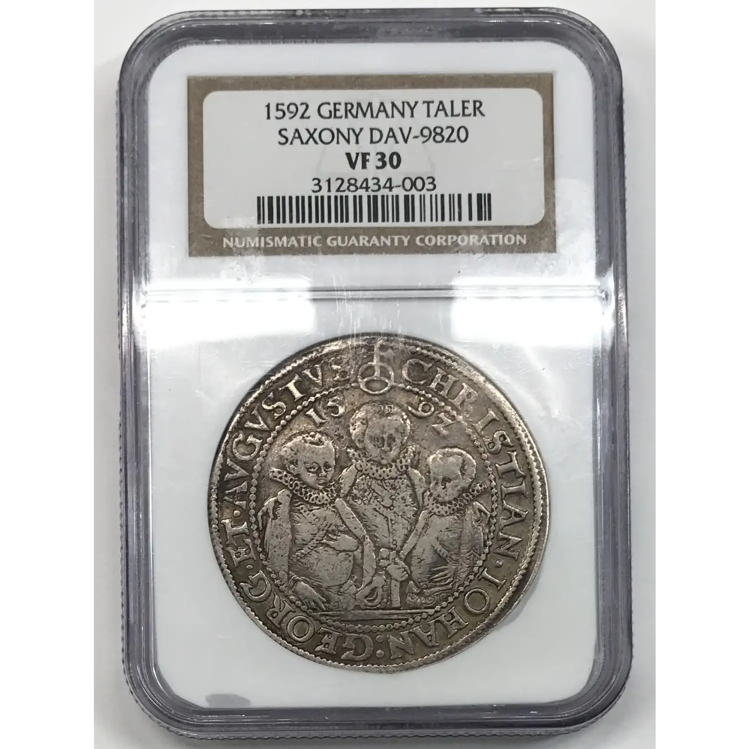 1592-HB German States Silver Thaler NGC VF-30 SAXONY-ALBERTINE DAV-9820