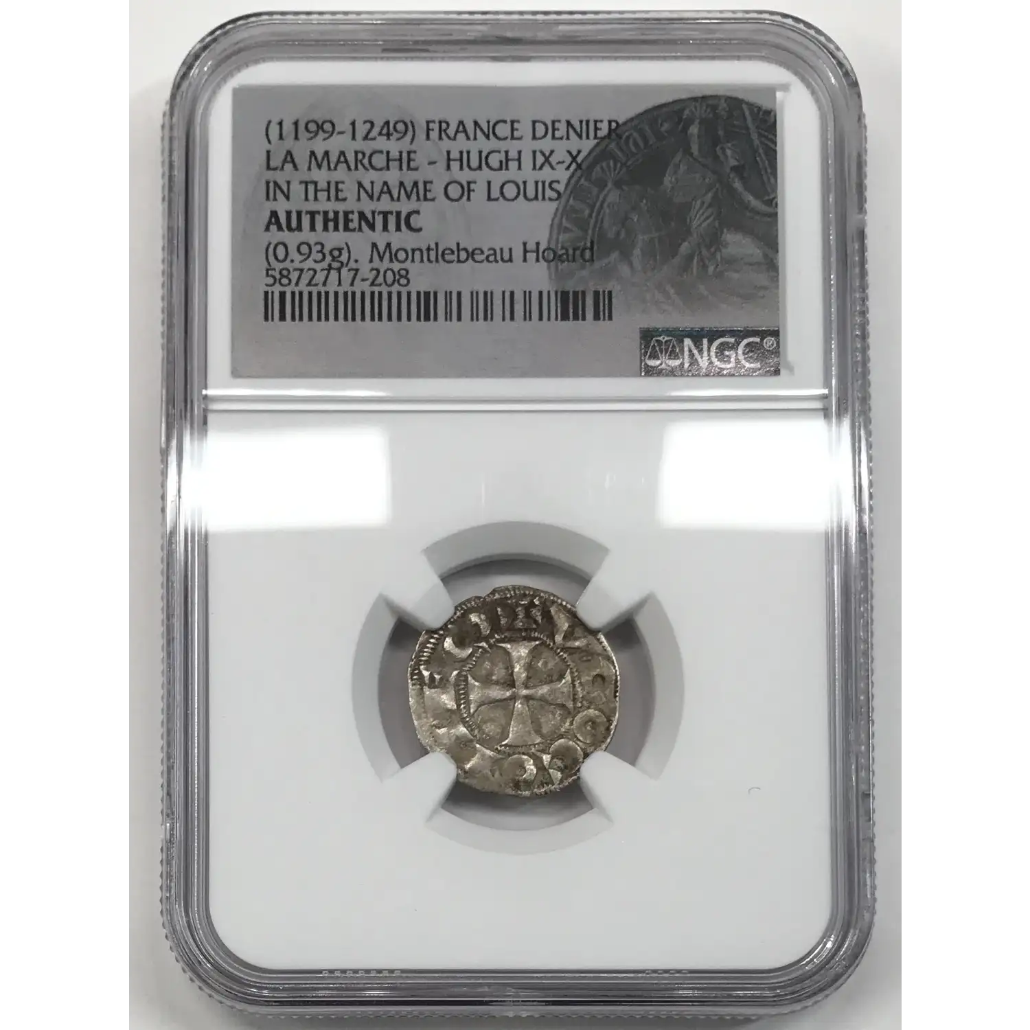 1199-1249 Medieval TBD TBD NGC Authentic France Denier La Marche Hugh IX-X in the name of Louis Montlebeau Hoard