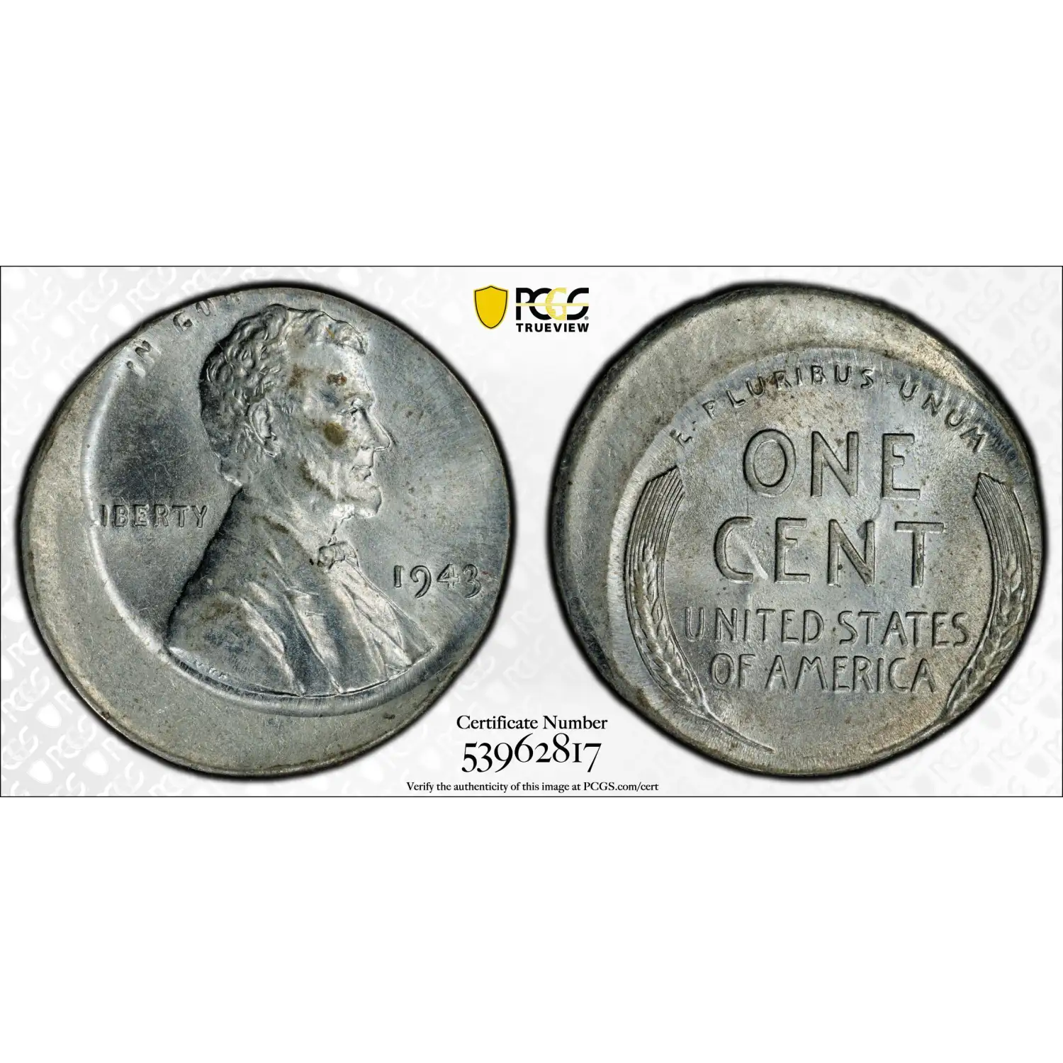 1943 P Lincoln Wheat Cent PCGS Genuine - UNC Details (97 - Environmental Damage) Struck 15% Off Center Mint Error