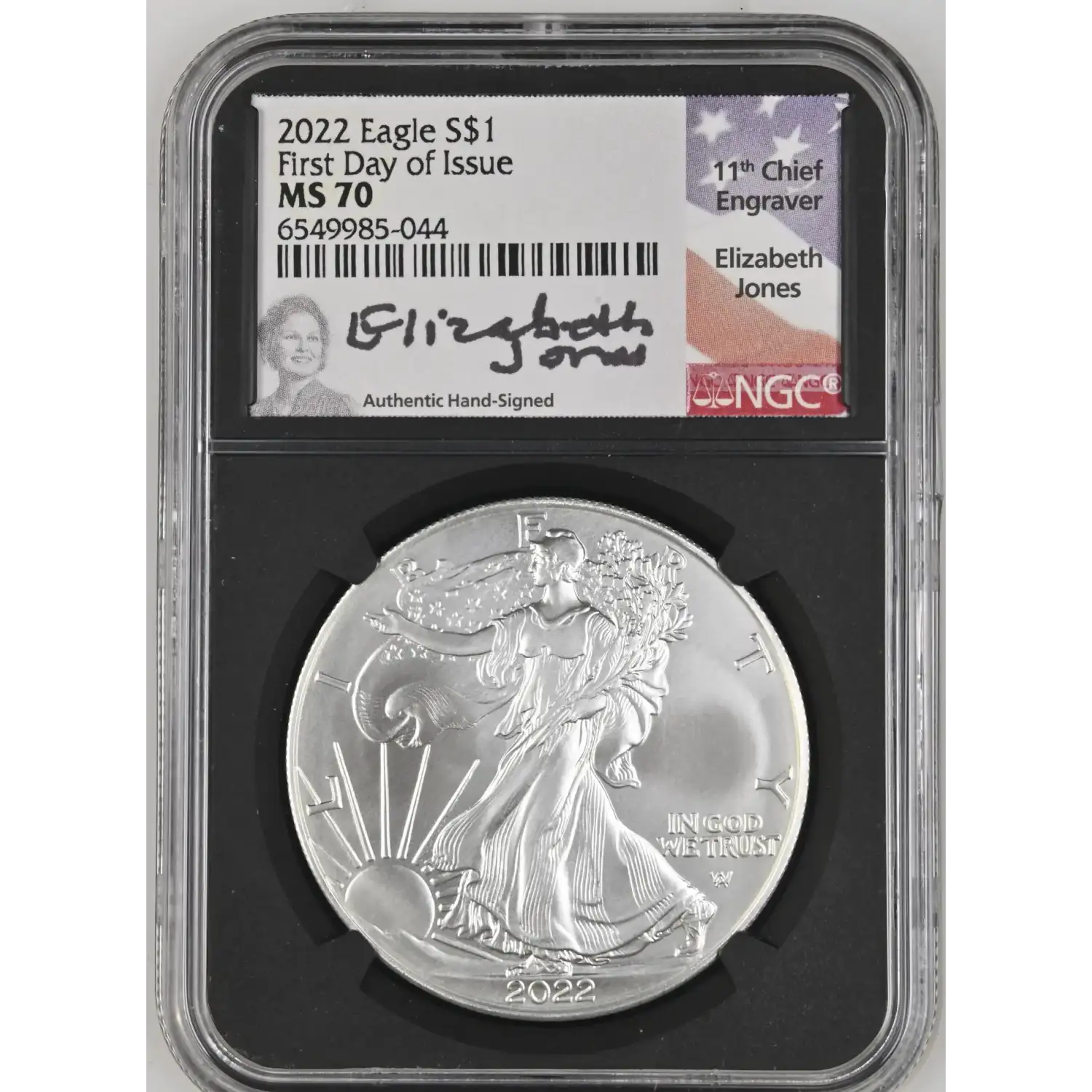 2022 Silver Eagle NGC MS-70 - First Day of Issue (FDOI) - Elizabeth Jones Signature Label