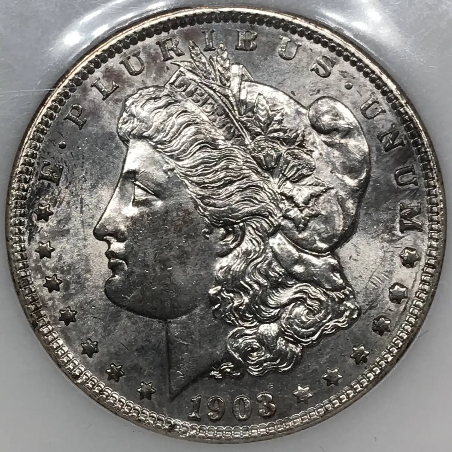 1903 P Morgan Silver Dollar - Uncirculated / BU - PCI Holder - note that grade has been covered in order to comply with eBay listing policies
