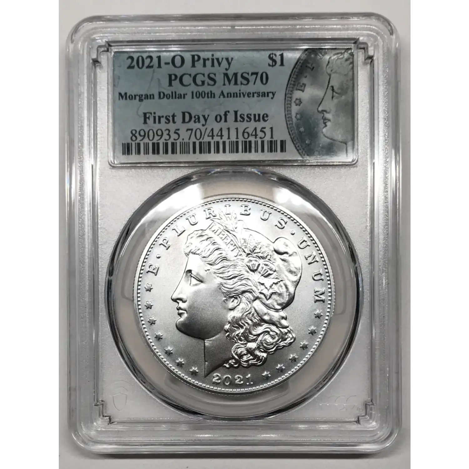 2021-O Morgan Silver Dollar PCGS MS-70 First Day of Issue (FDOI) - New Orleans 'O' Privy Mark - Morgan Dollar 100th Anniversary