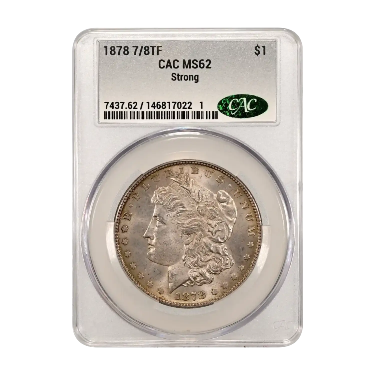 1878 P 7/8 TF Strong Morgan Silver Dollar CAC Grading (CACG) MS 62