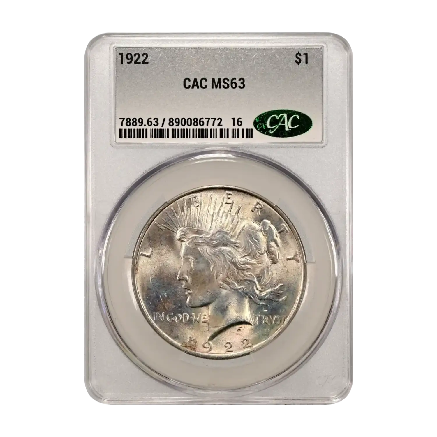 1922 Peace Silver Dollar CACG MS 63 CAC
