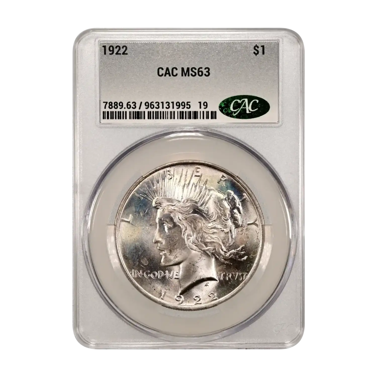 1922 Peace Silver Dollar CACG MS 63 CAC