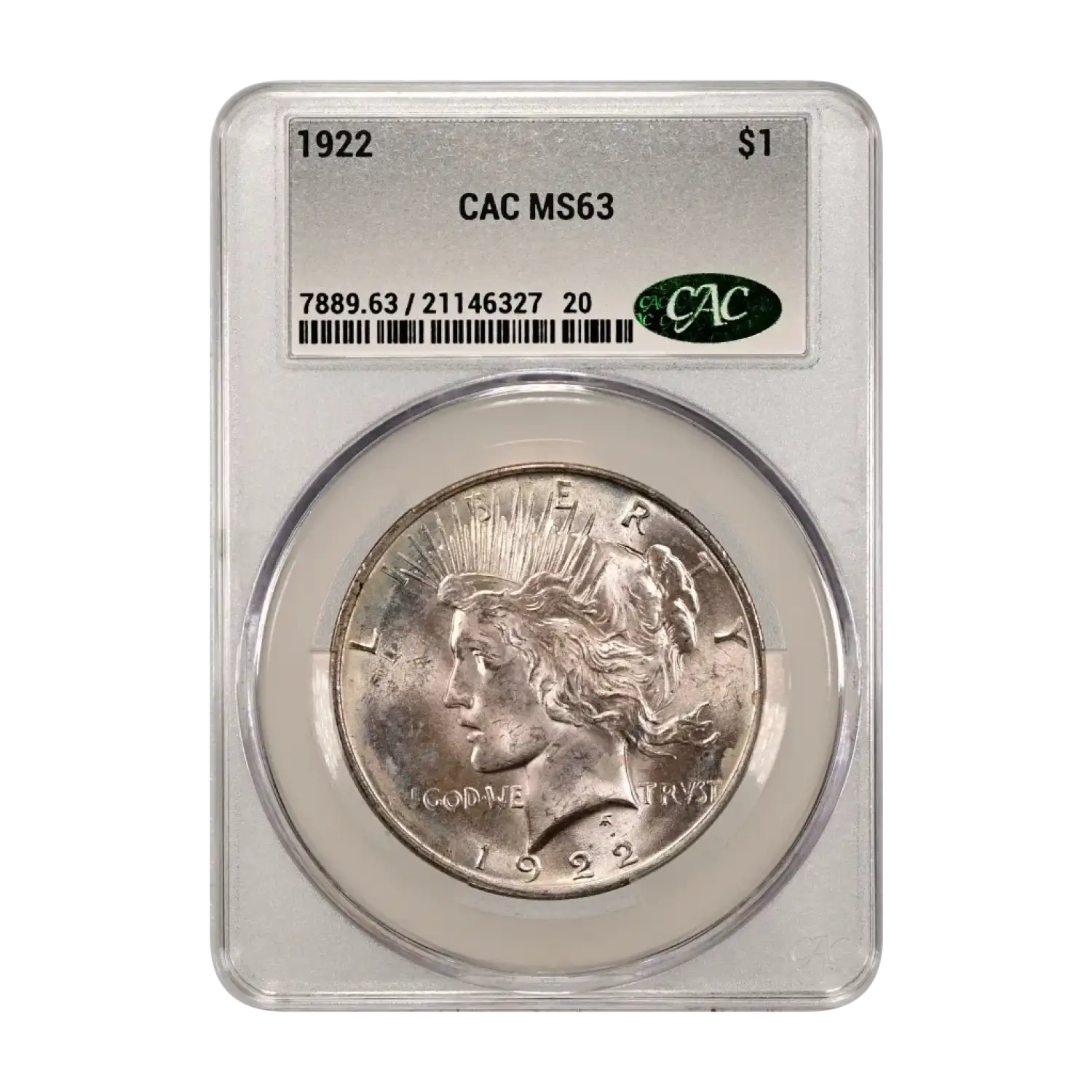 1922 Peace Silver Dollar CACG MS 63 CAC
