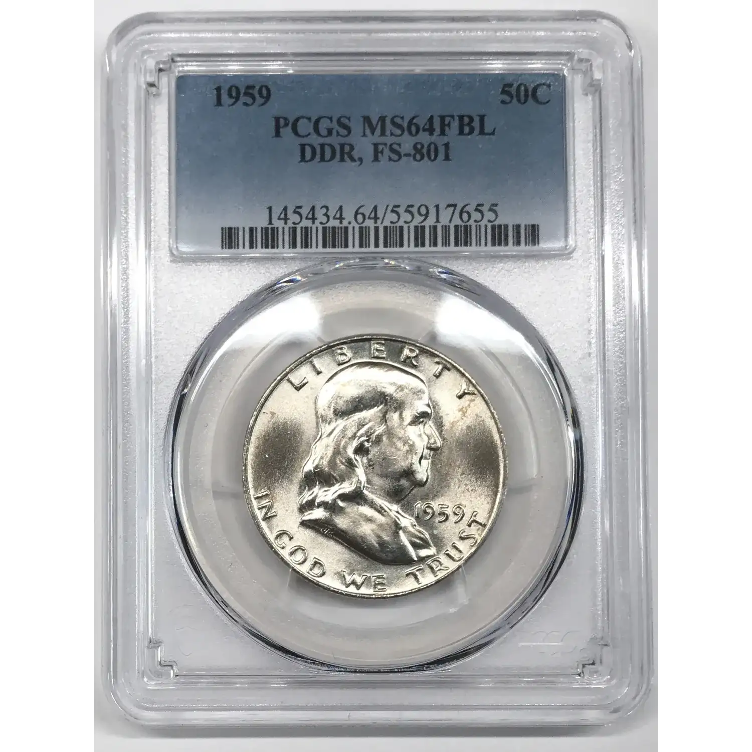 1959 Franklin Half Dollar PCGS MS-64 FBL DDR FS-801 T2/T1