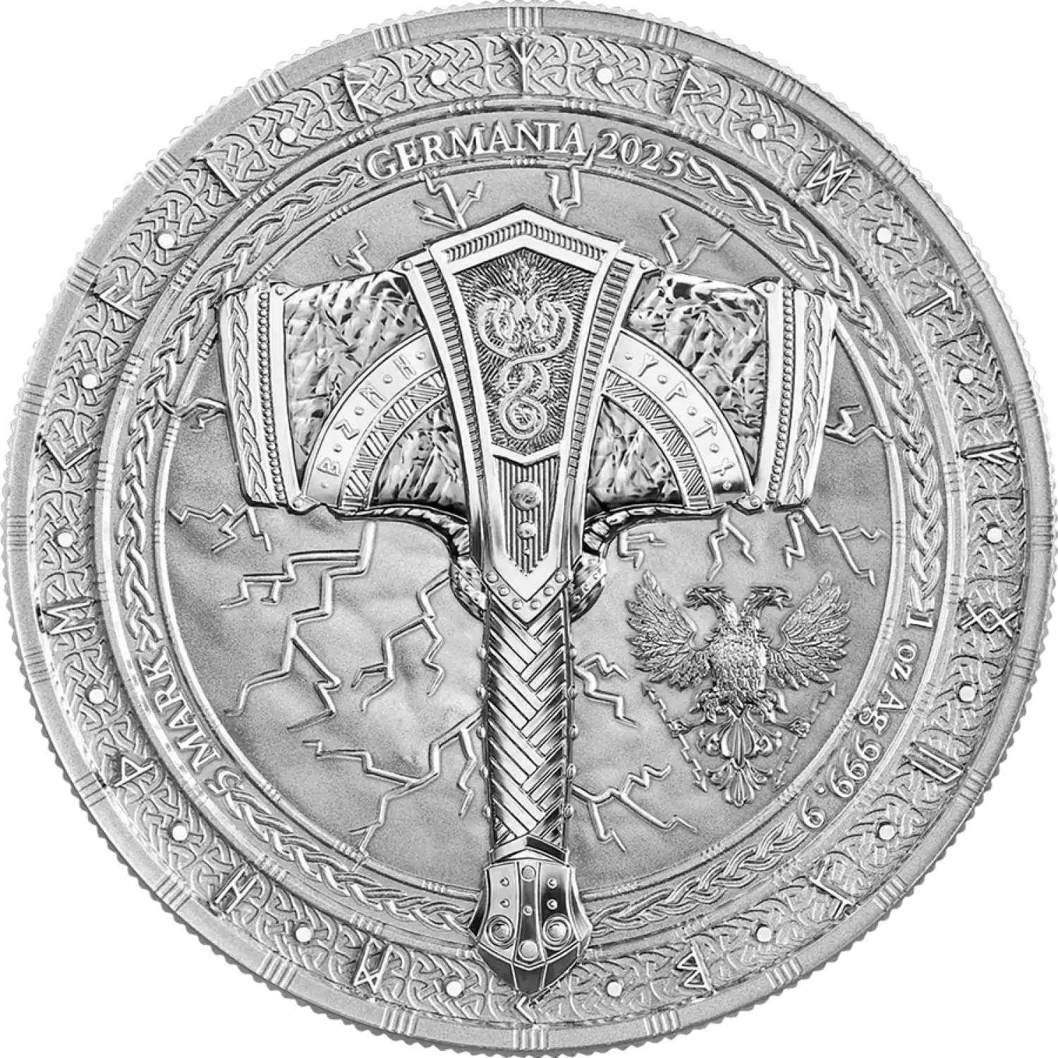 The 2025 1 oz Mjölnir Silver Coin is a stunning addition to any coin collector’s repertoire, celebrating the legendary hammer of Thor from Norse mythology. This beautifully crafted silver coin embodies both rich history and artistry, making it a perfect piece for adoring collectors and investment enthusiasts alike.