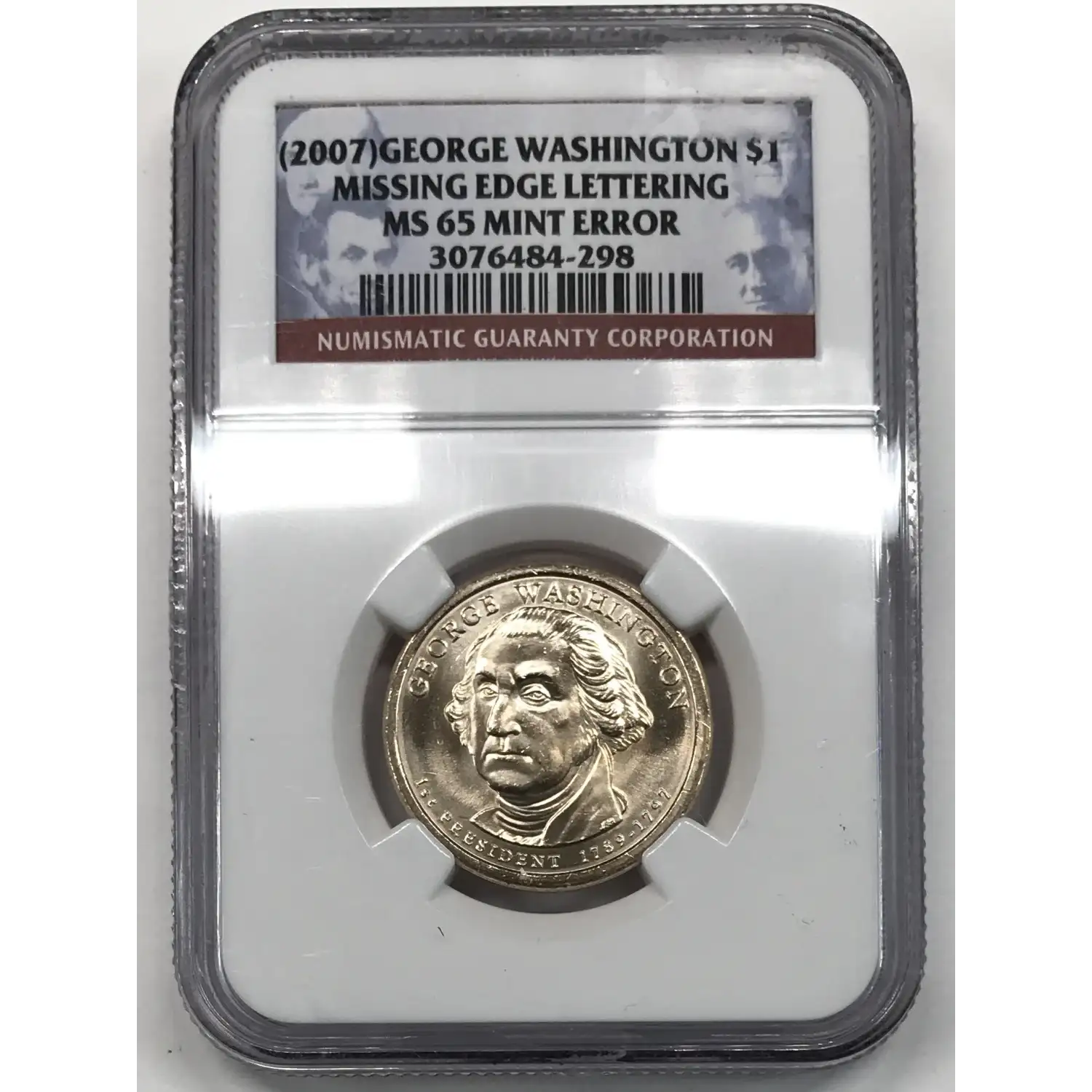 2007 Presidential Dollar NGC MS-65 MISSING EDGE LETTERING MINT ERROR GEORGE WASHINGTON