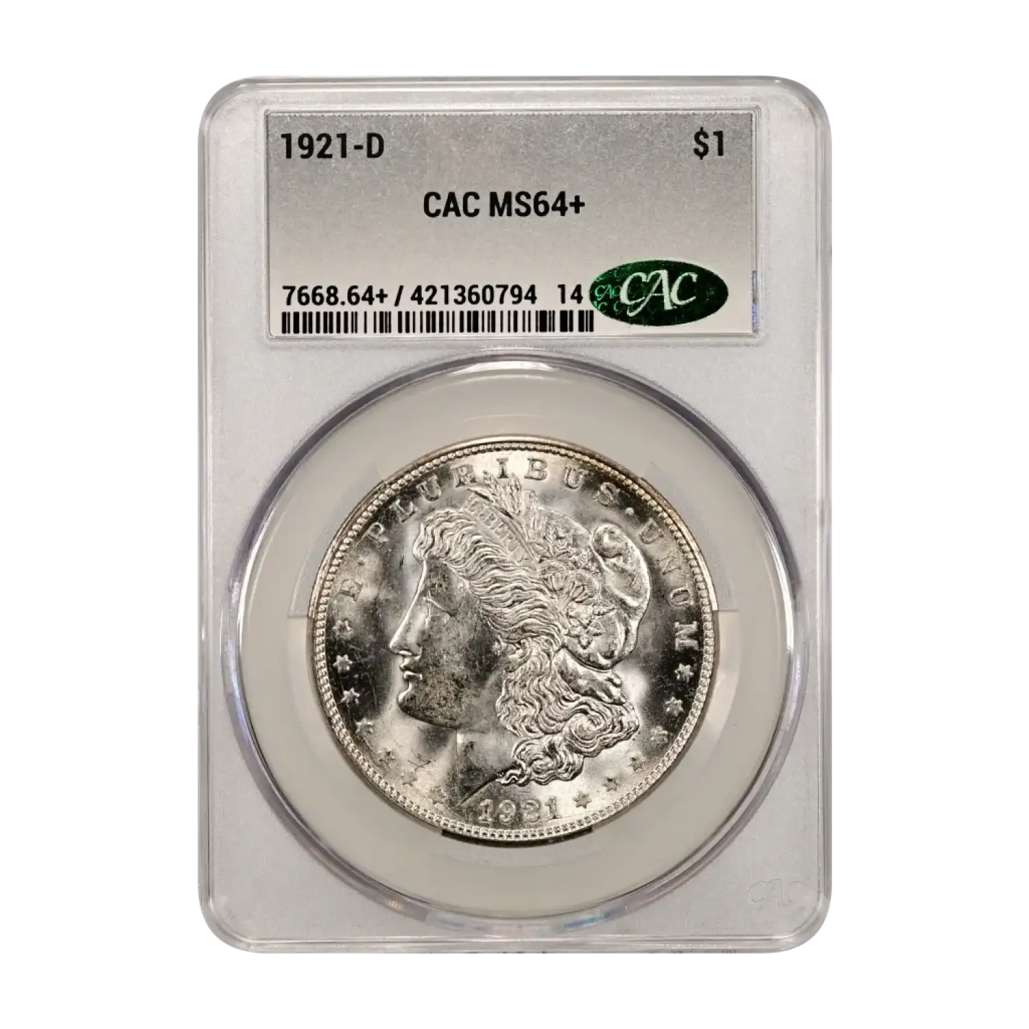 1921-D Morgan Silver Dollar CAC Grading (CACG) MS 64+ Plus