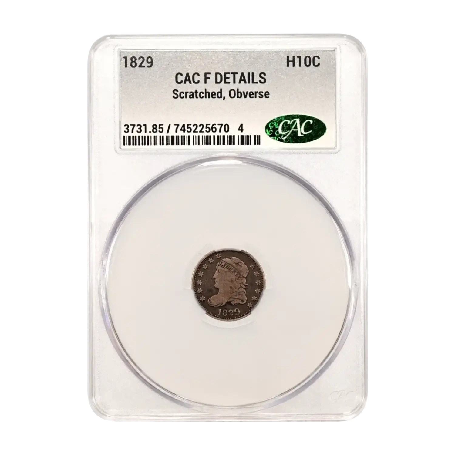 1829 P Capped Bust Half Dime CAC Grading (CACG) Fine/F Details (scratched, obverse)