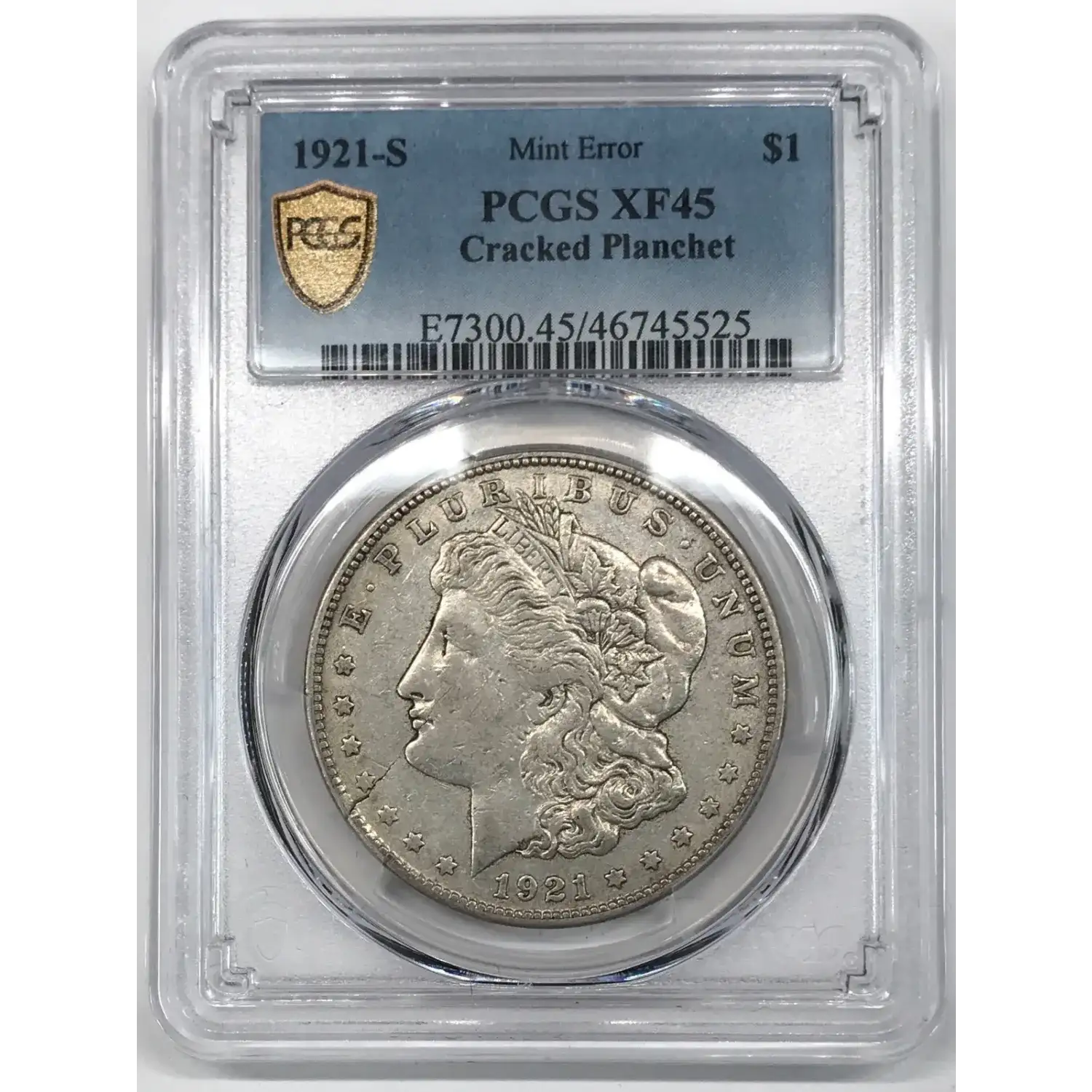 1921-S Morgan Silver Dollar PCGS XF-45 Cracked Planchet Mint Error