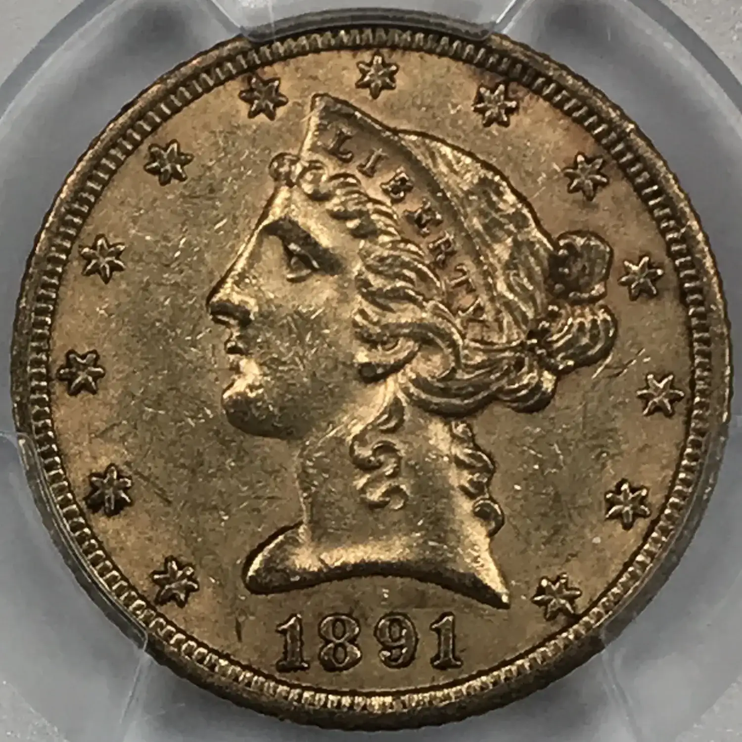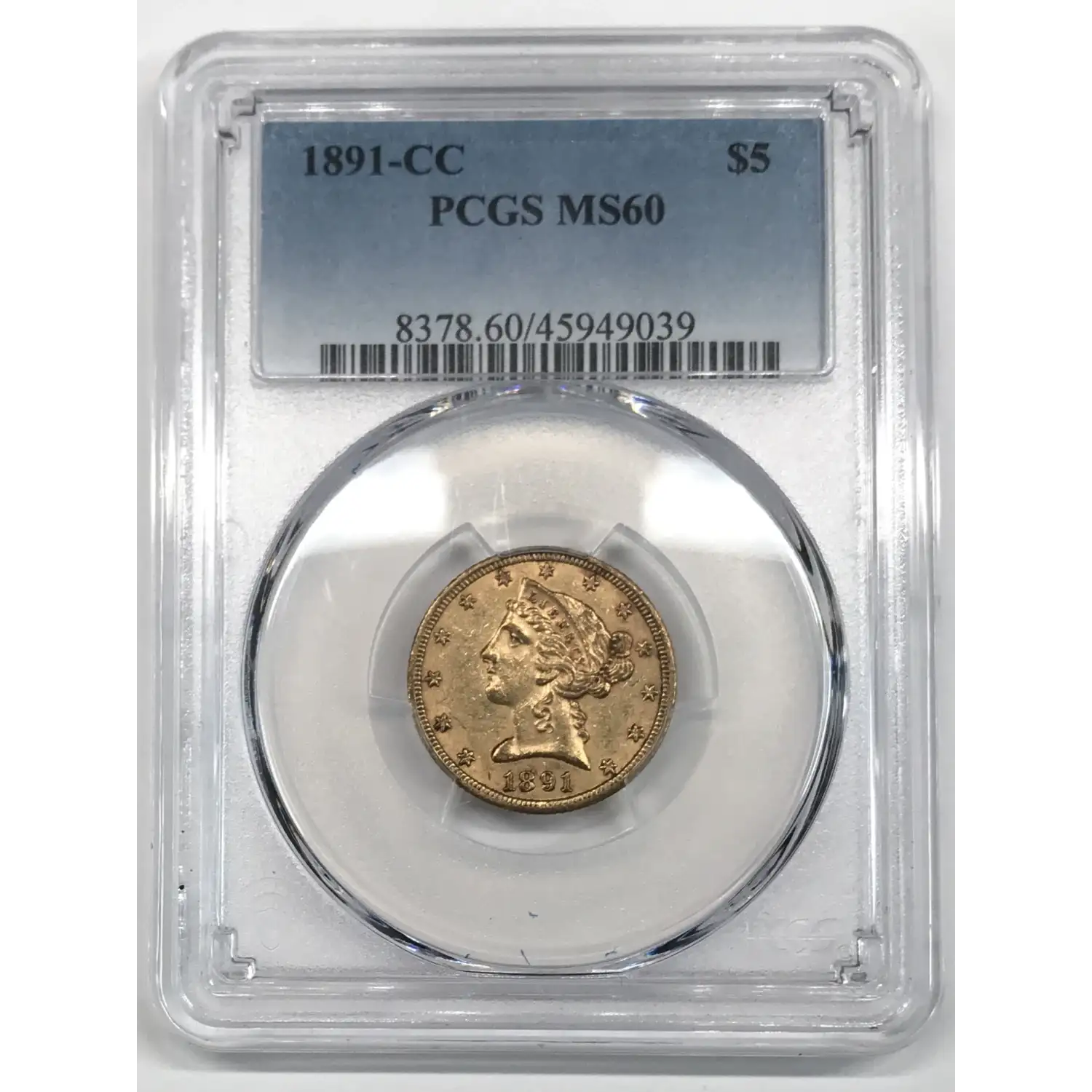 1891-CC $5 Gold Liberty Head Half Eagle PCGS MS-60