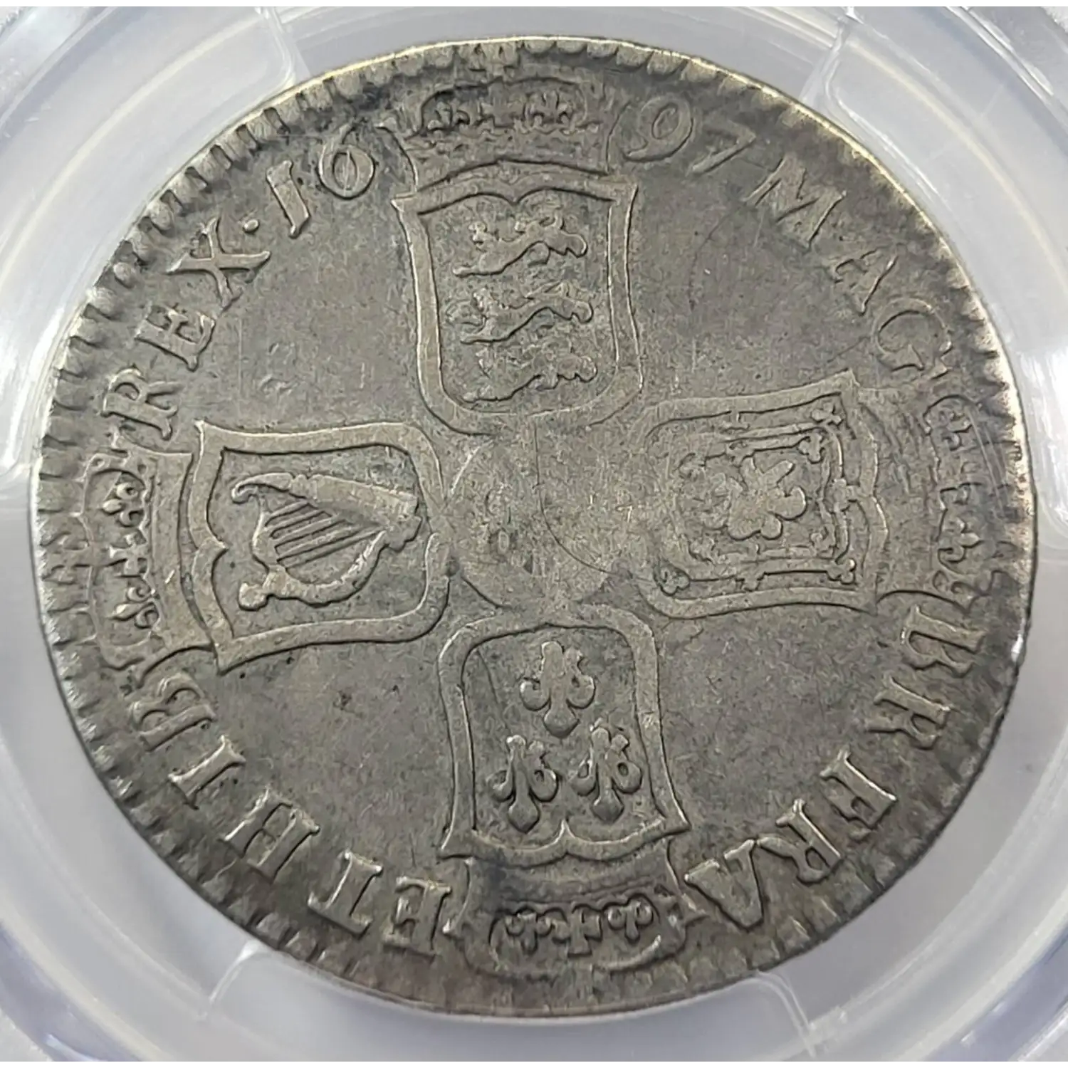 1697 GREAT BRITAIN Silver 1/2 CROWN PCGS F-15
