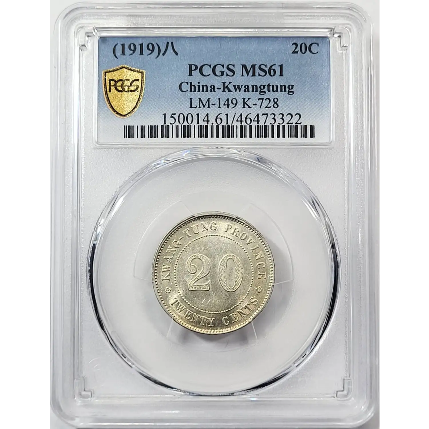 1919 CHINA, PROVINCIAL Silver 20 CENTS PCGS MS-61 Kwangtung