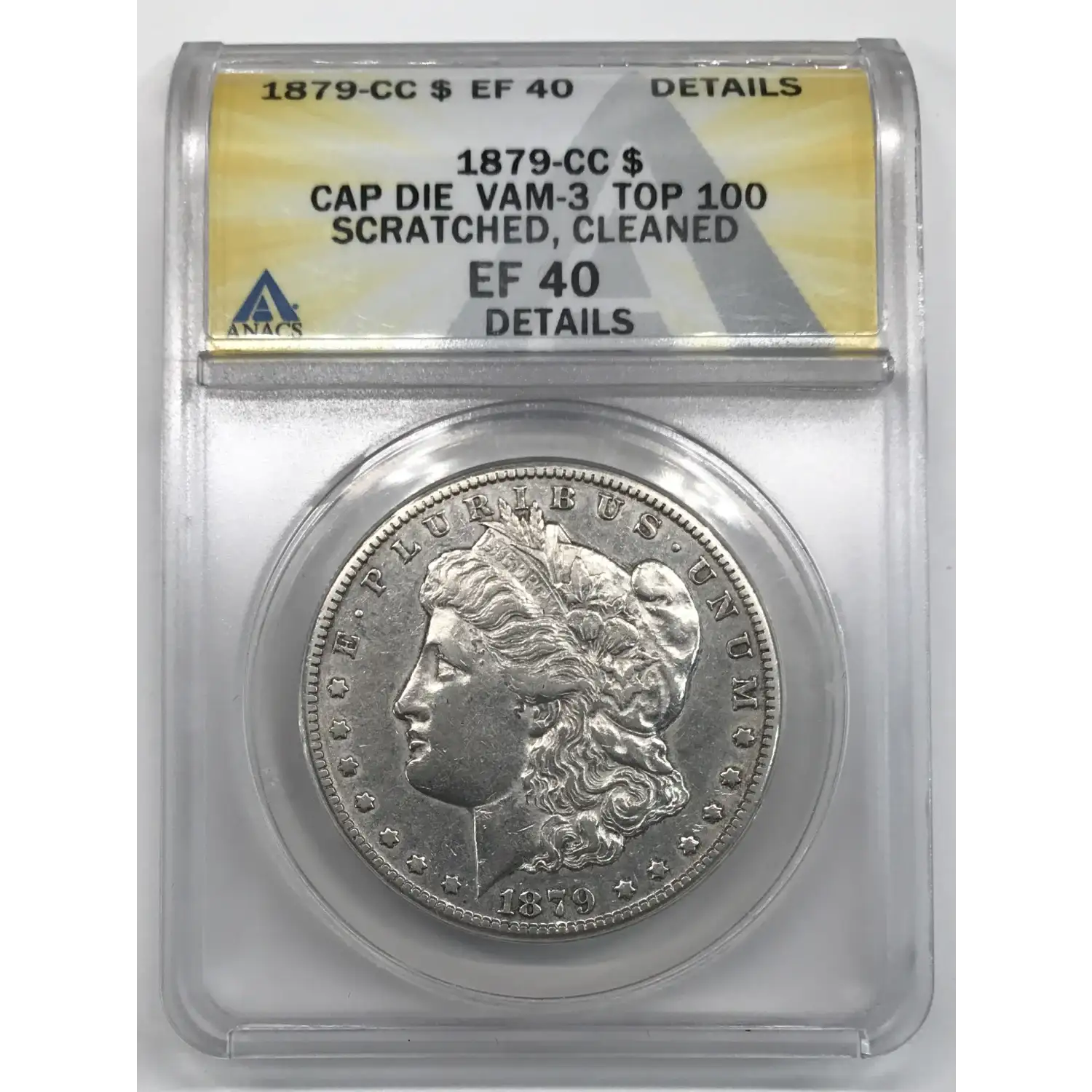 1879 CC Morgan Silver Dollar ANACS EF/XF-40 Details (scratched, cleaned) - TOP 100 VAM-3 Cap/Capped Die