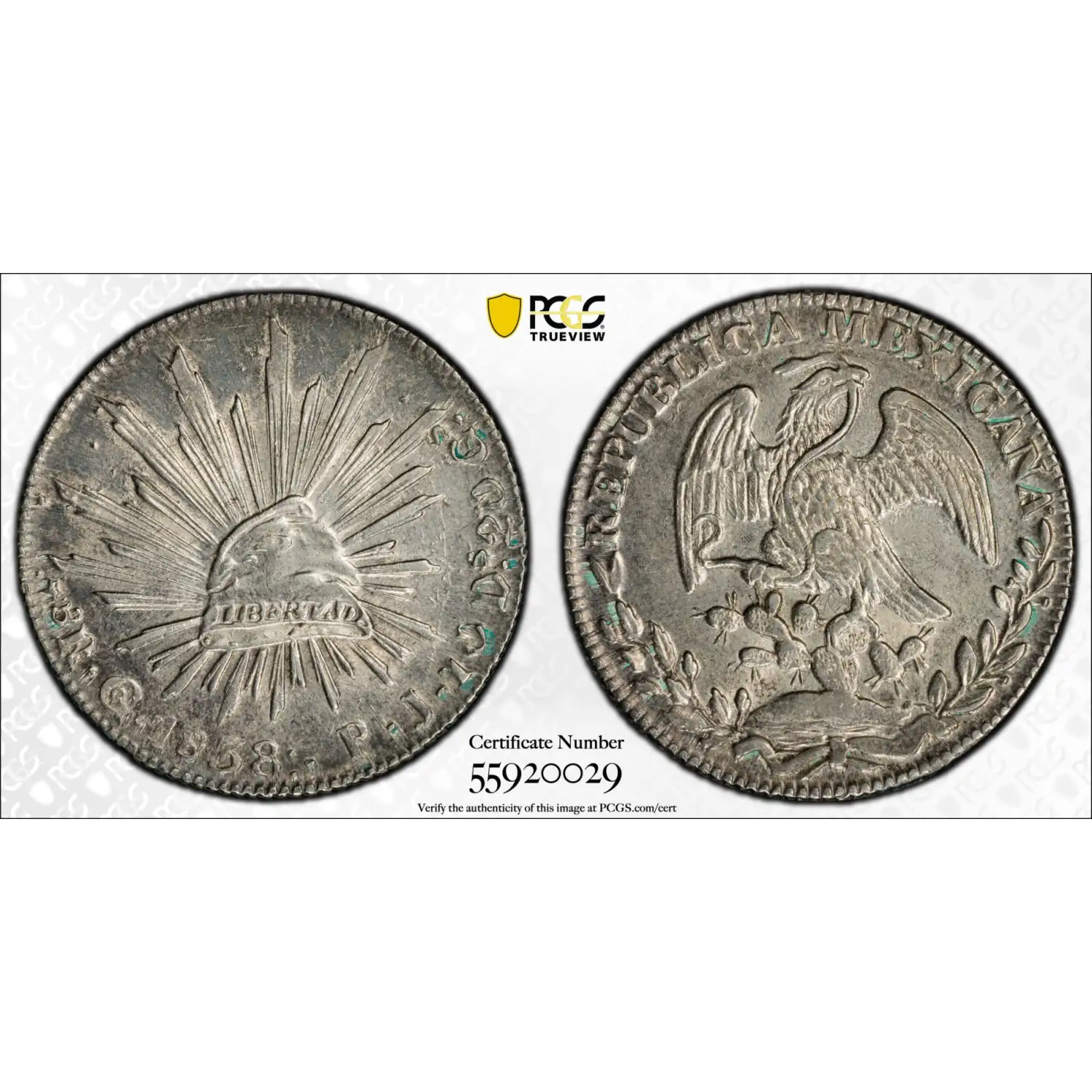 1838-Go PJ Mexico Silver 8 REALES PCGS AU-58 Go20