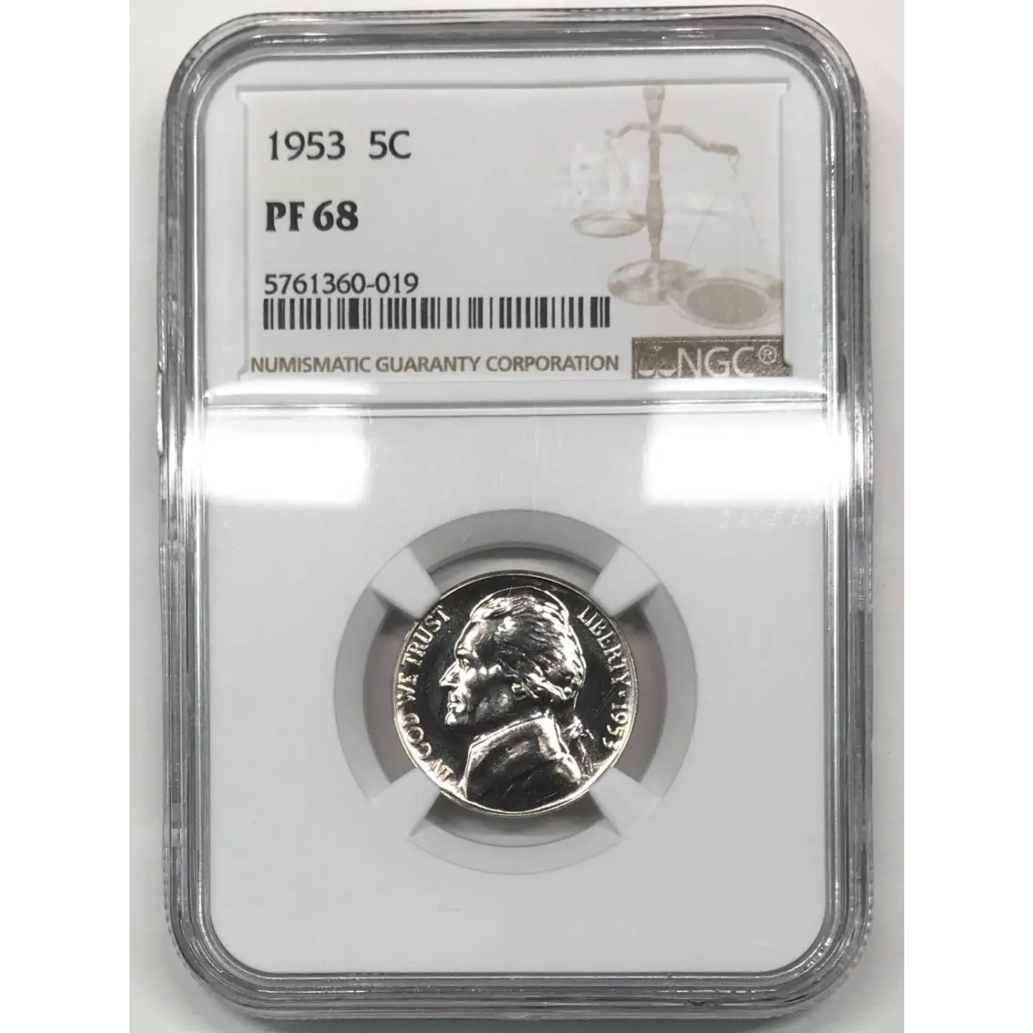 1953 Proof Jefferson Nickel NGC PF-68