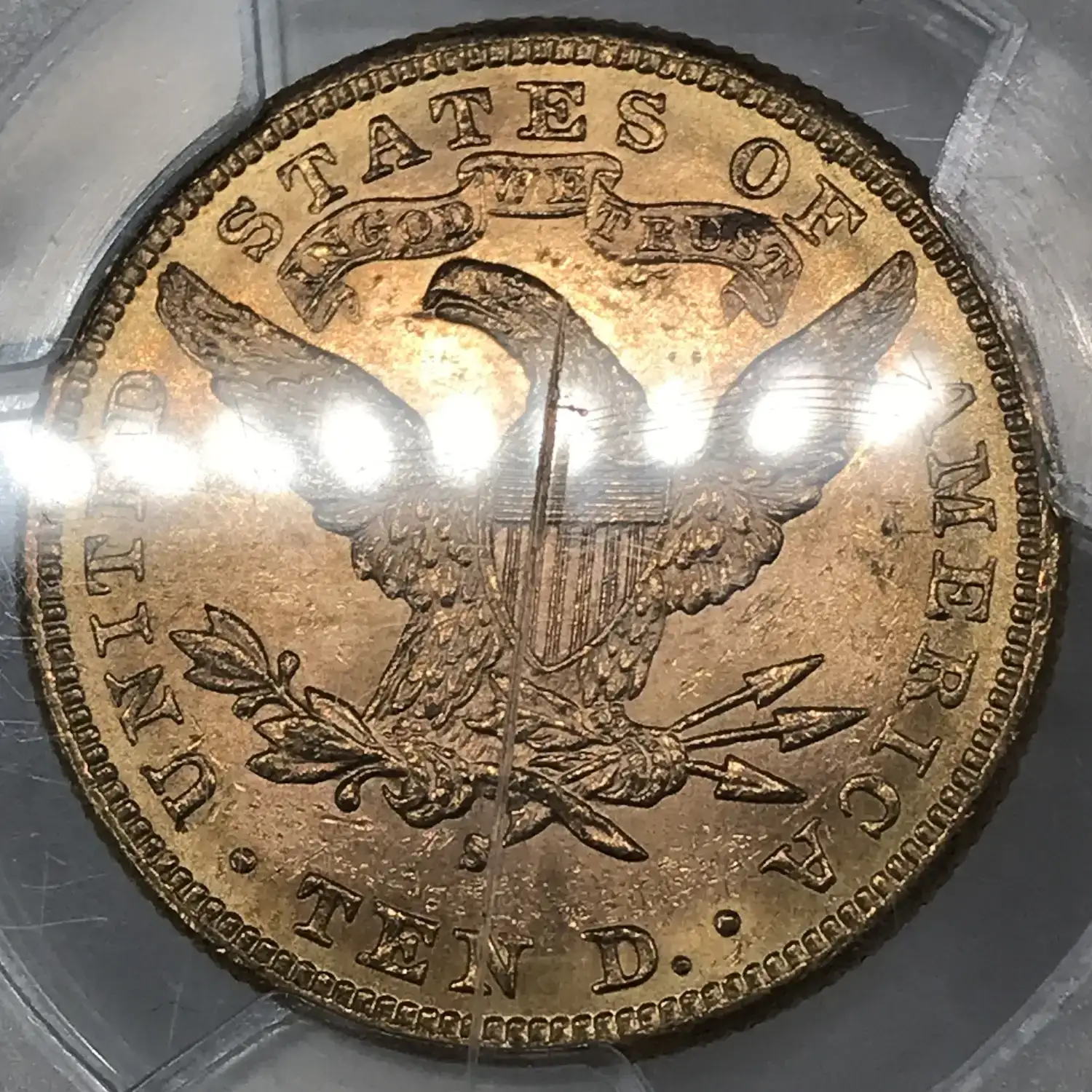1888 S $10 Gold Liberty Head Eagle PCGS MS-63 - deep scratch on back side of slab