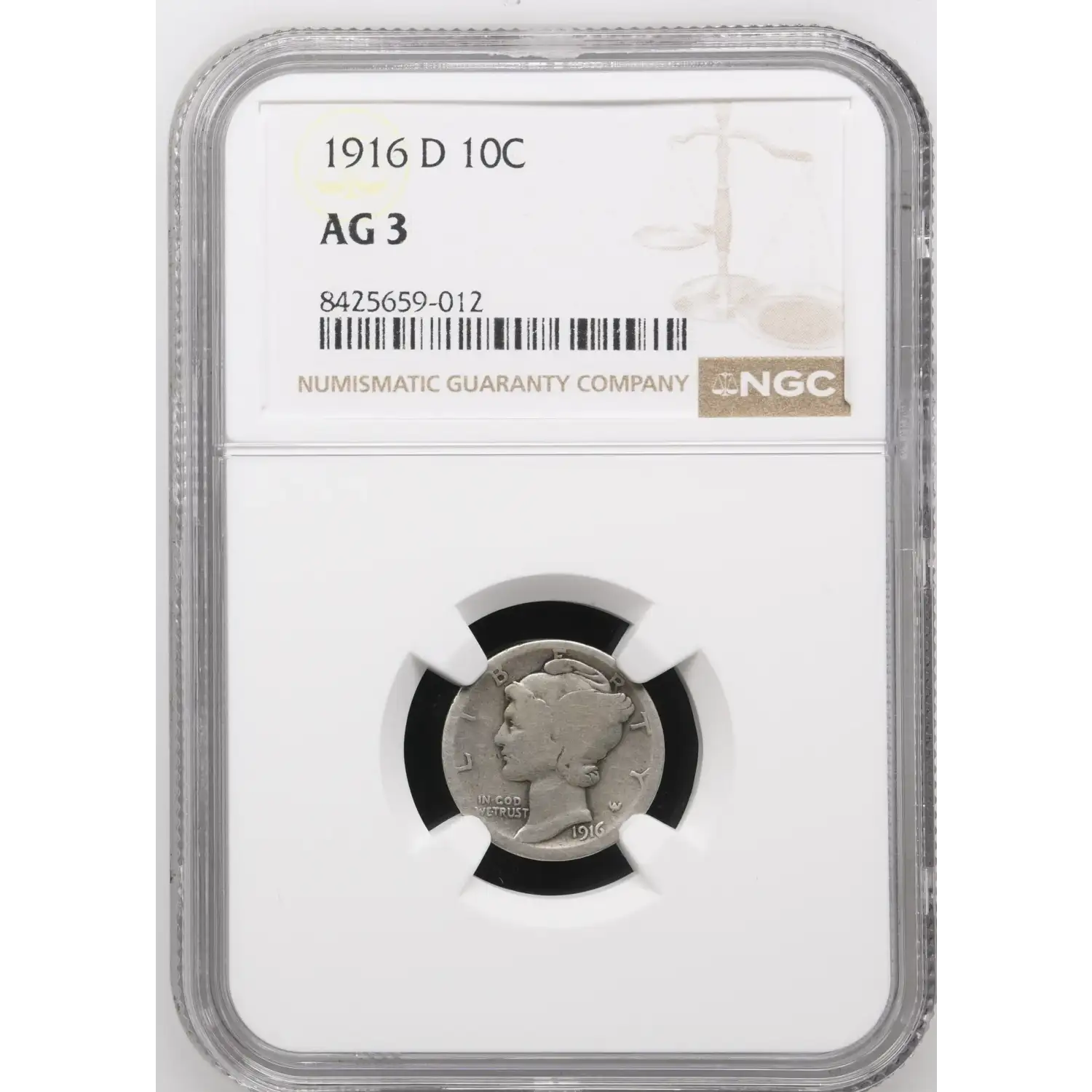 1916 D Mercury Dime NGC AG-03 / ABOUT GOOD 3
