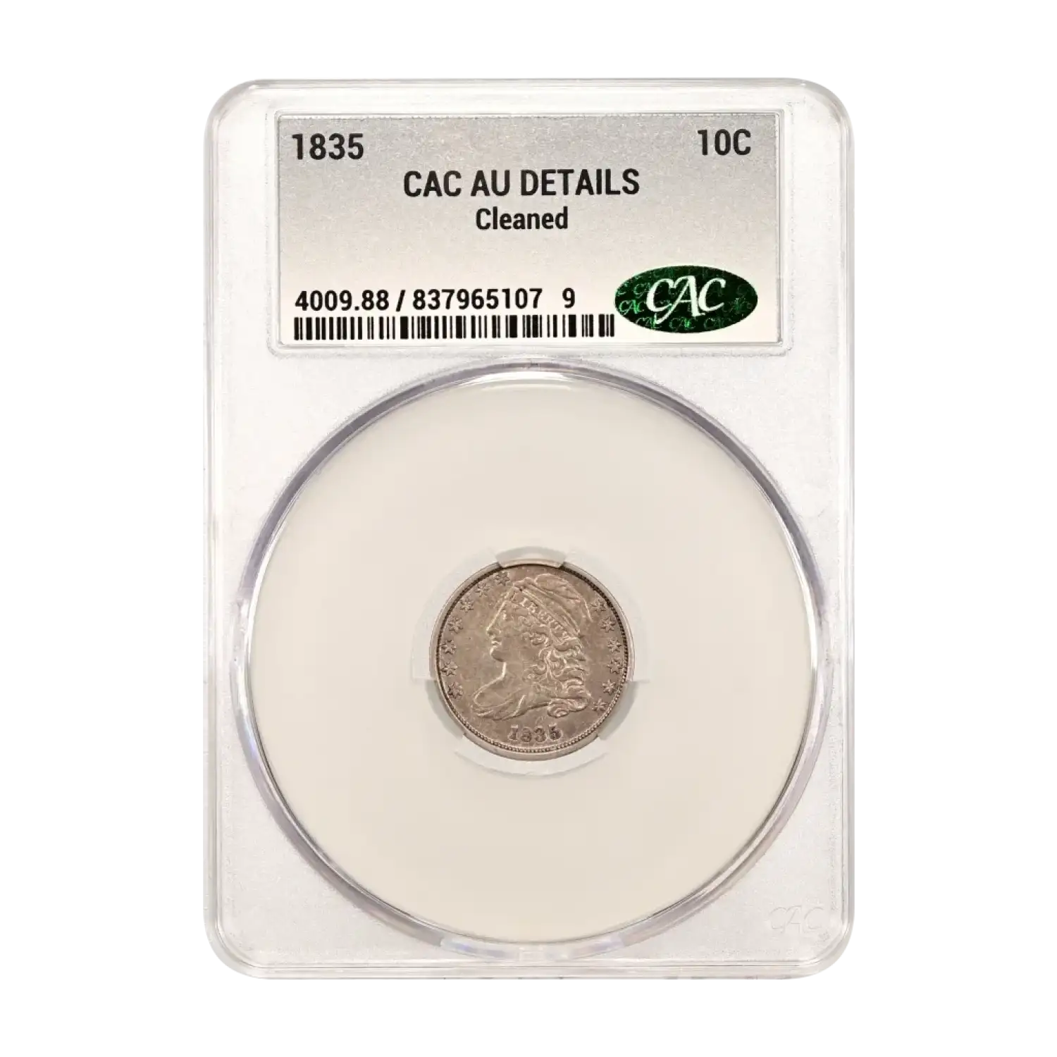 1835 P Capped Bust Dime CAC Grading (CACG) AU Details (cleaned)