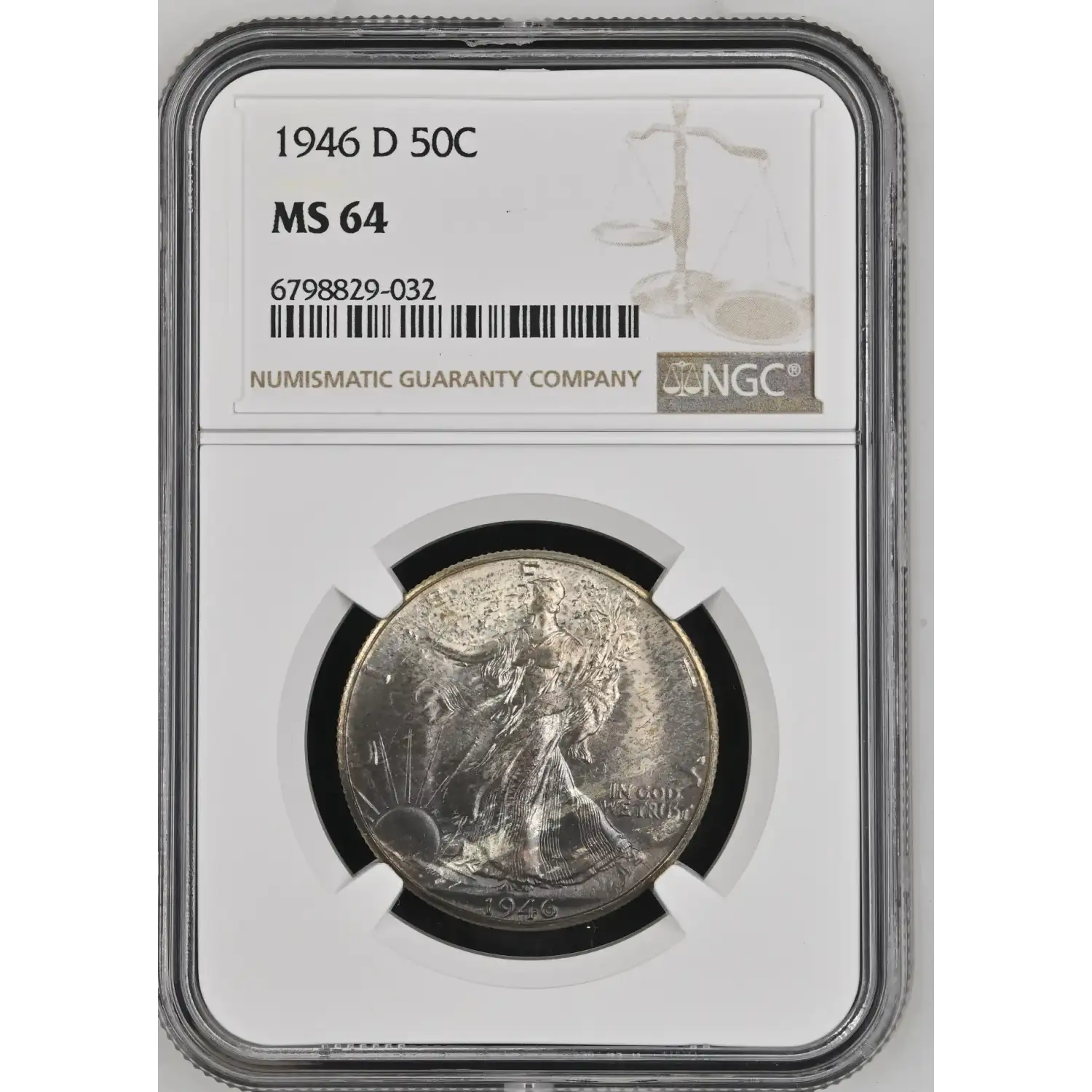 1946 D Walking Liberty Half Dollar NGC MS-64 - Toned