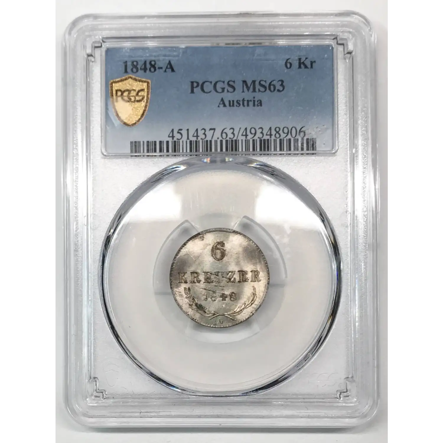 1848-A Austria Silver 6 KREUZER PCGS MS-63