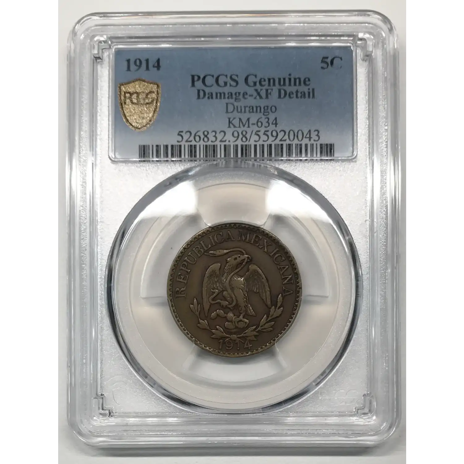 1914 MEXICO-REVOLUTIONARY Brass 5 CENTAVOS PCGS Genuine - XF Details (98 - Damage) Durango